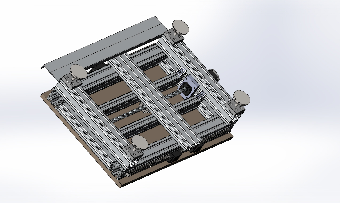 Перерисовал свой предыдущий проект на 60-ом профиле. Успел сделать пока только одну станину. Не повесил ещё датчик и отбойники, ну и защиту.