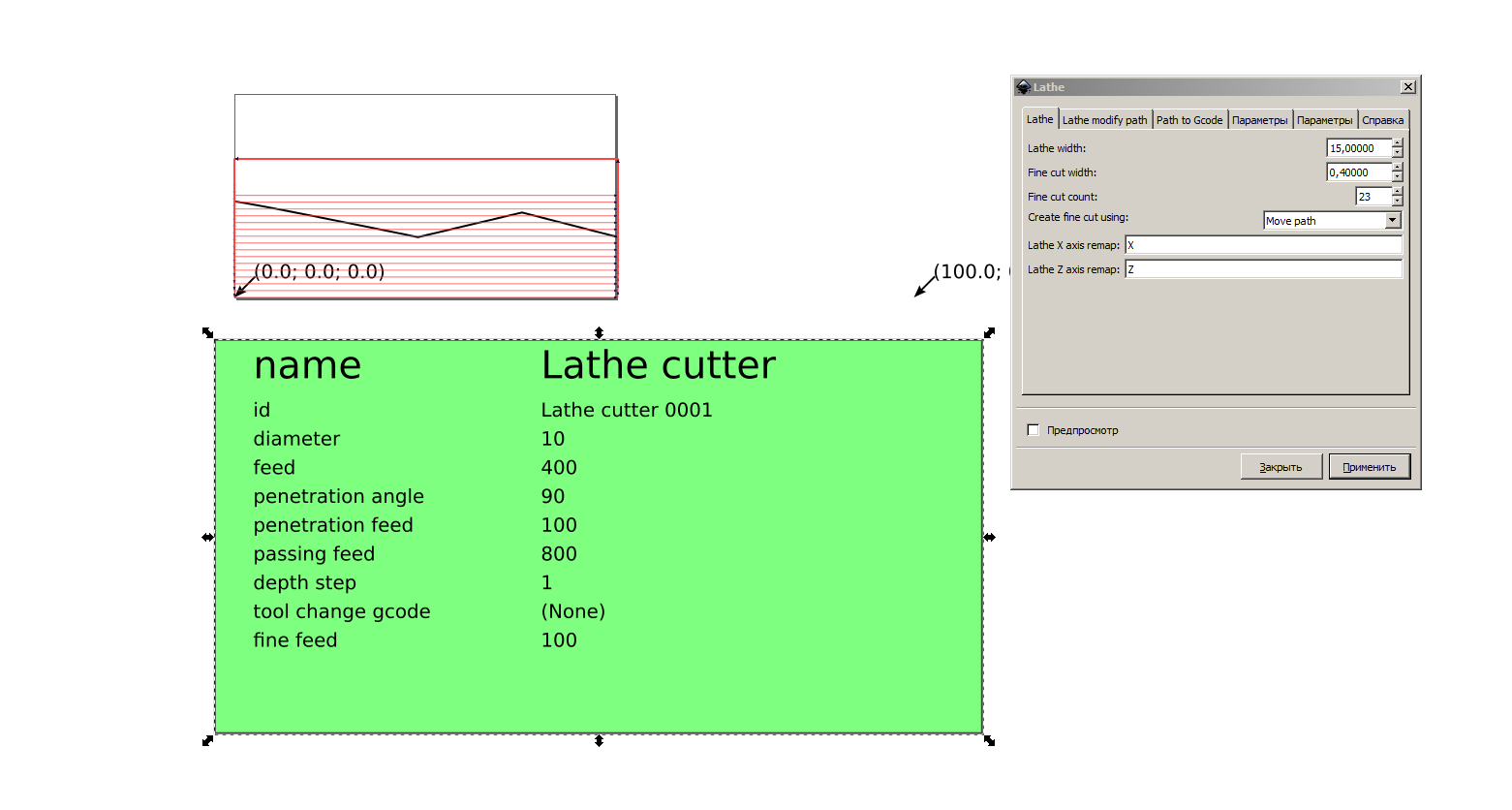 Друзья, вопрос. Пытаюсь сгенерить в инкскейпе простенький g код для токарки. Что-то не выходит... Траектория резца непонятна...