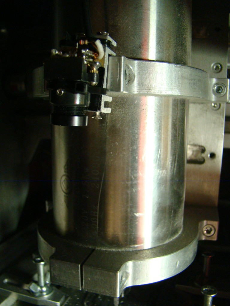 Получилось не очень точно, поэтому на шпинделе он закреплен также криво, чтоб компенсировать этот баг (на фото он еще без крышки).