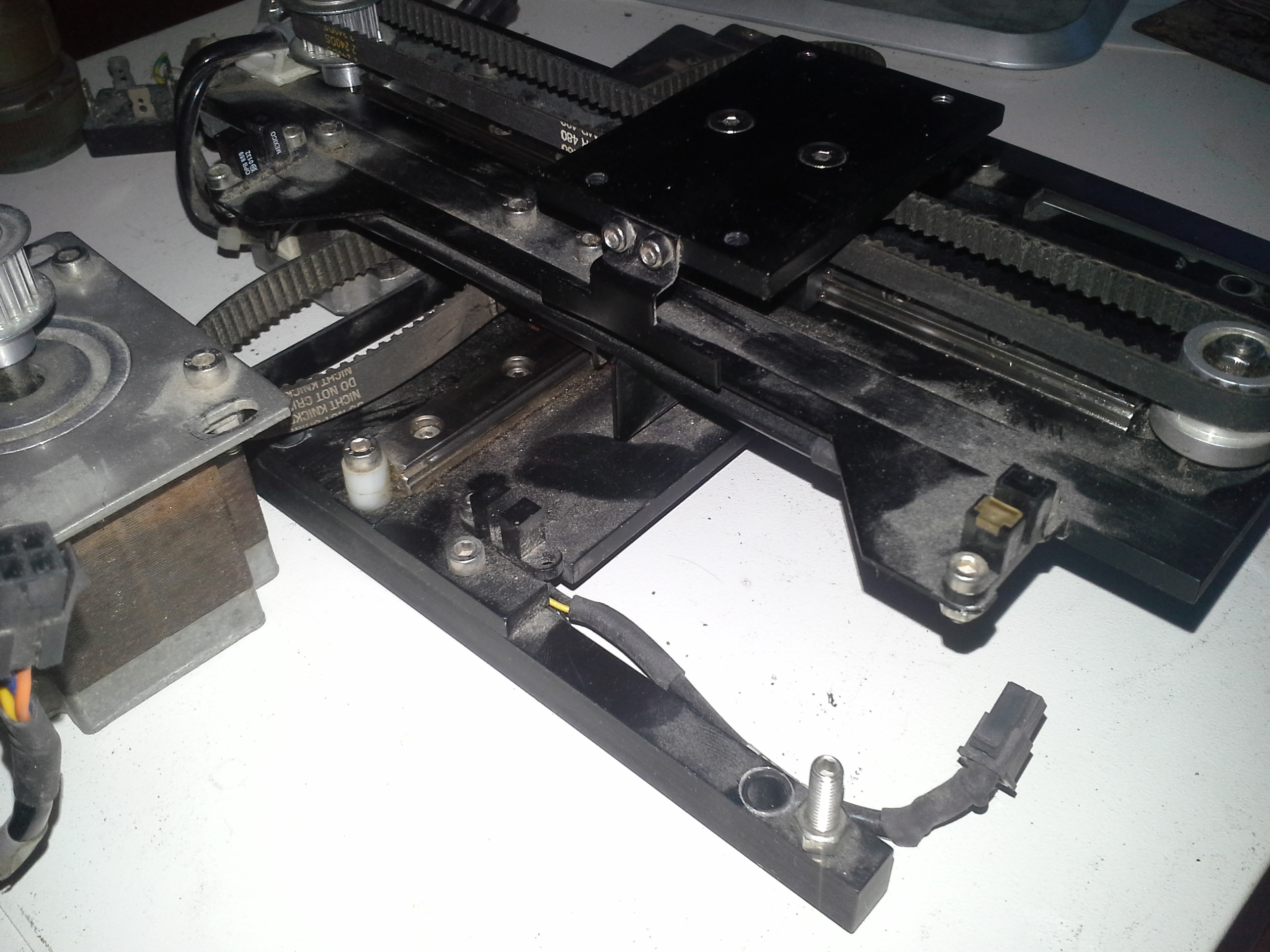 нижний рельс star 12 . ход 100 мм ,ремень 3MR456 , ширина 9 мм , мотор привода биполярный, высота 53 мм, маркировка стёрлась с наклейки, незначительная поверхностная коррозия магнитопровода.