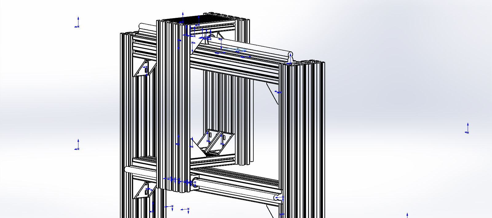 3) Чертите начиная с оси Z, потом переходите на крепление валов к оси X, потом только балку, её опоры, и саму раму.