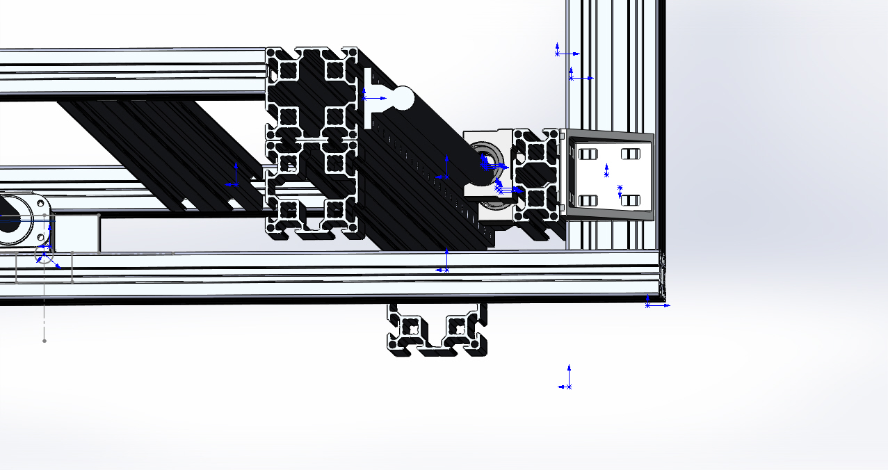 Вот тут видно что уголок 60*60 с одной стороны не лезет - упирается в подшипник SBR16UU оси Х. Думаю заменить каждый из них (их там два) на 2 уголка (итого 4 шт будет) вот таких