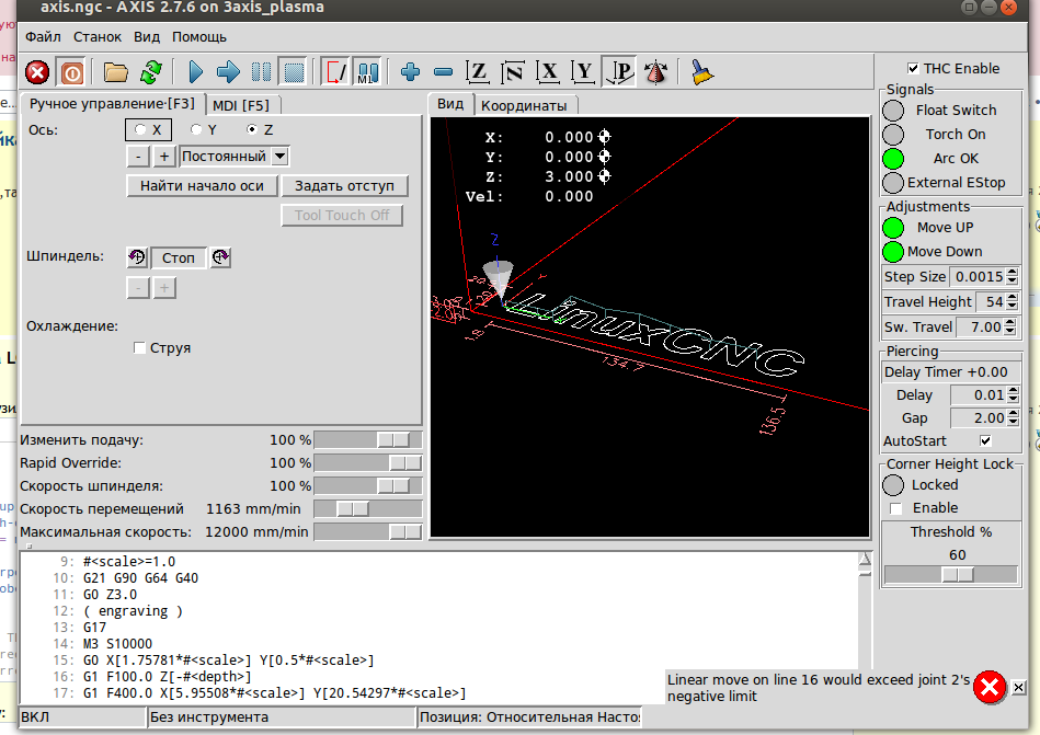 Требуется настройка LCNC для контроля высоты резака плазмы