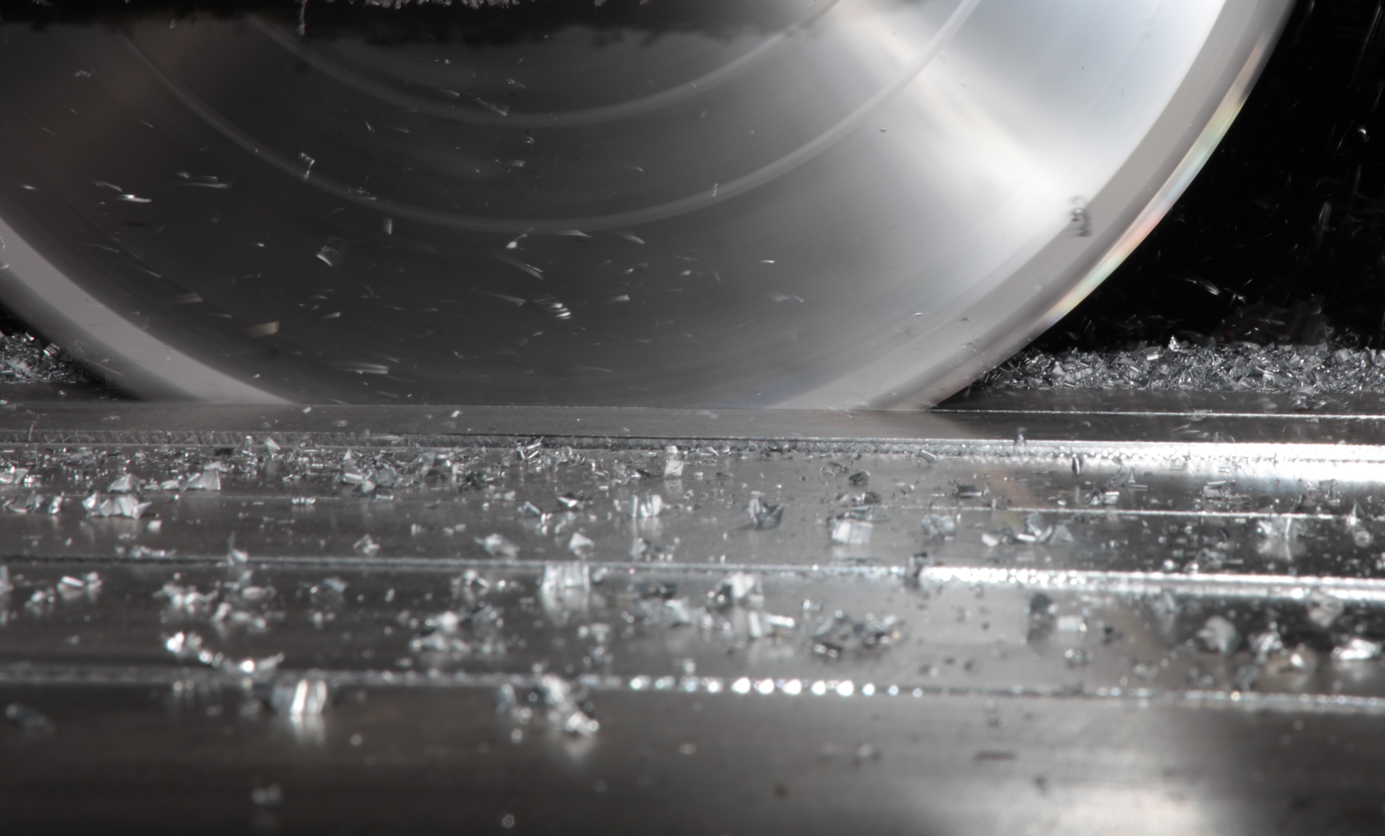 Что в роликах: Резка-торцовка плиты АМГ6 толщиной 200мм, встречное фрезерование, затвор 1/25.000с, 8.000кадр/с.