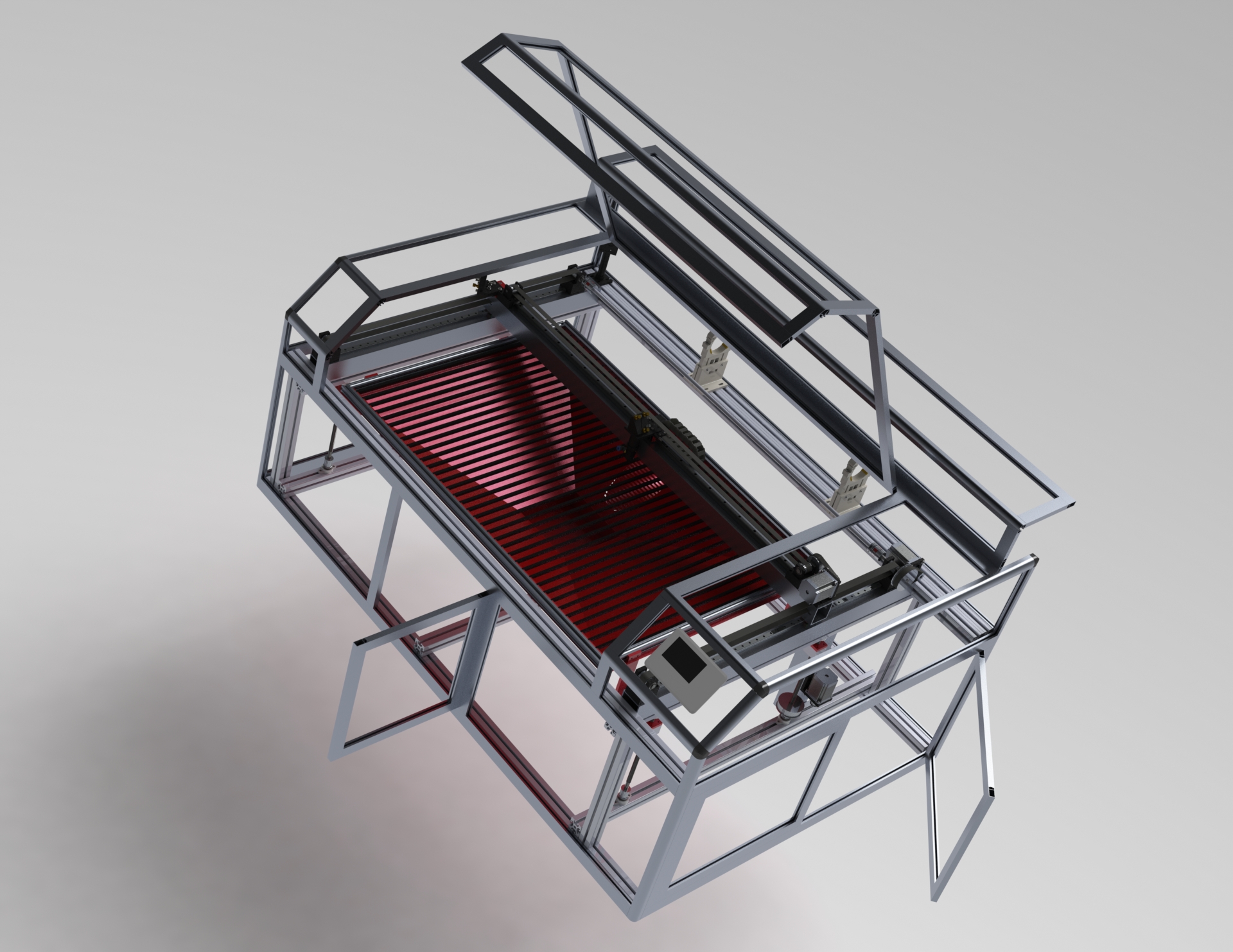 Рельсы, ремни, зеракала, профили - постоянны и их размеры, а так же модели априори известны.