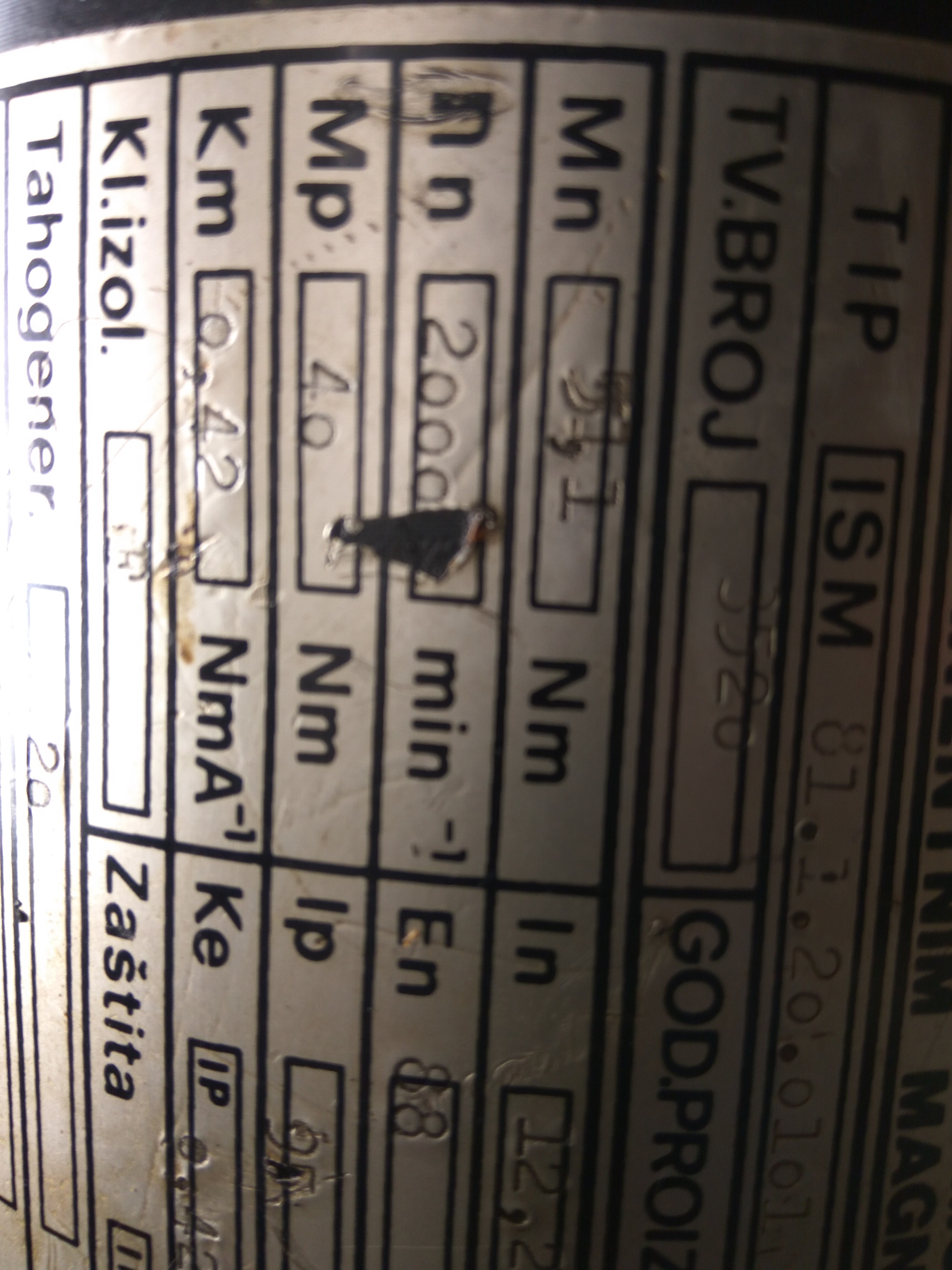 Если автор темы не против , размещу фотки своих двигателей. На продольной и поперечной осях стоят двигатели 3,7 Н/м 4000об/мин, на вертикальной оси 5,1Н/м при 2000об/мин. По мне, так 4ооо оборотов при редукции 3:1 многовато. Станок фрезер югославский АГ250.