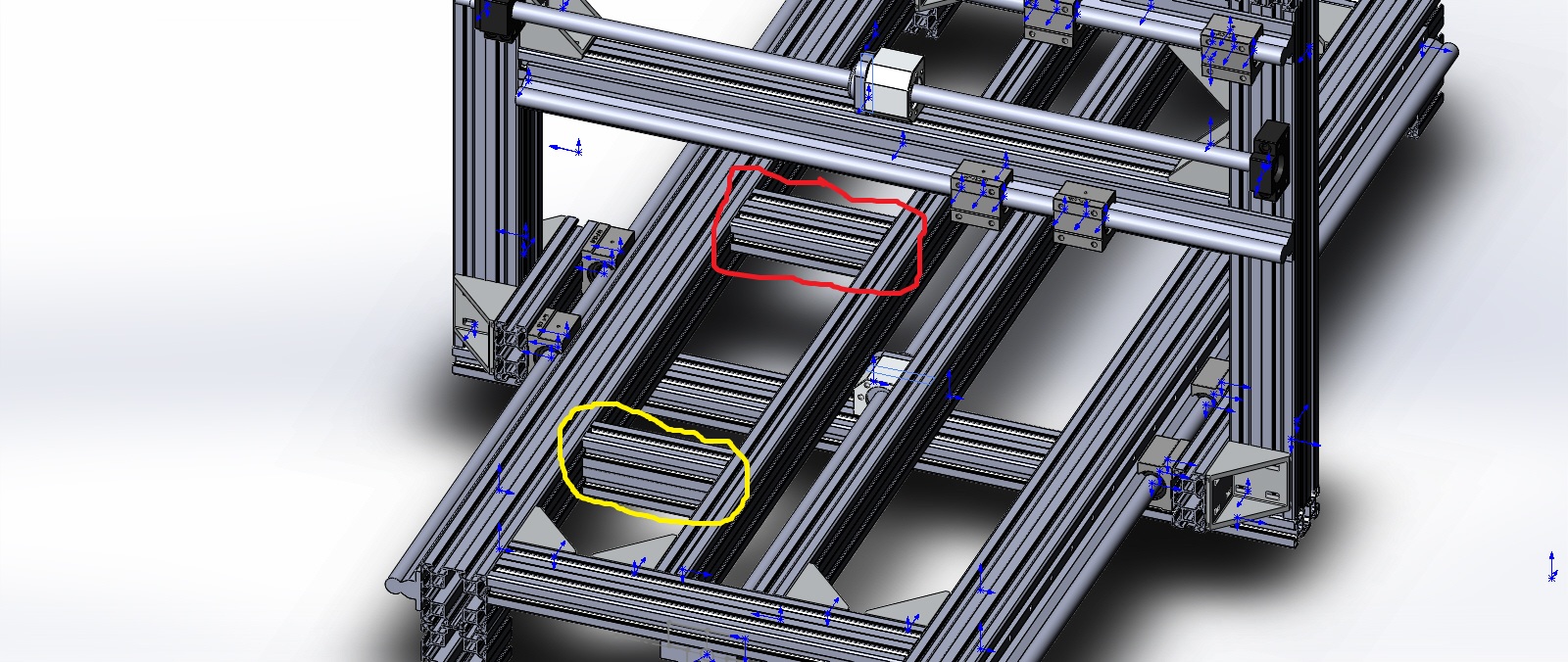 Сегодня дорисовал свое чудо. Когда делал скрины для вопросов увидел одну из своих ошибок - нужно удлинить ось Y (основу рамы) чтобы в крайнем положении шпиндель не весел над воздухом, а мог работать.Вот тут видно мой косяк: