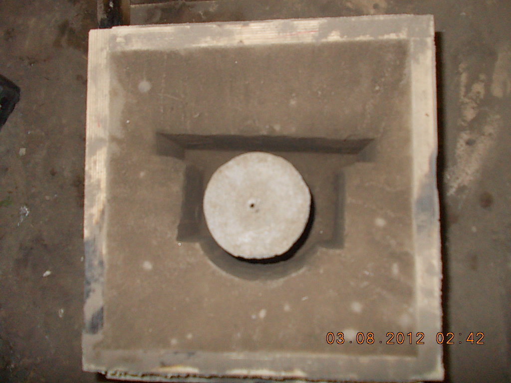 Отлил в третий раз, чтоб земля не выпадала добавил глины и побольше воды, результат Ал "закипел" (на фото справа) видно отверстие так как верхняя часть крепежа пустотелая от паров воды, сделал воды поменьше результат по лучшее (на фото слева)