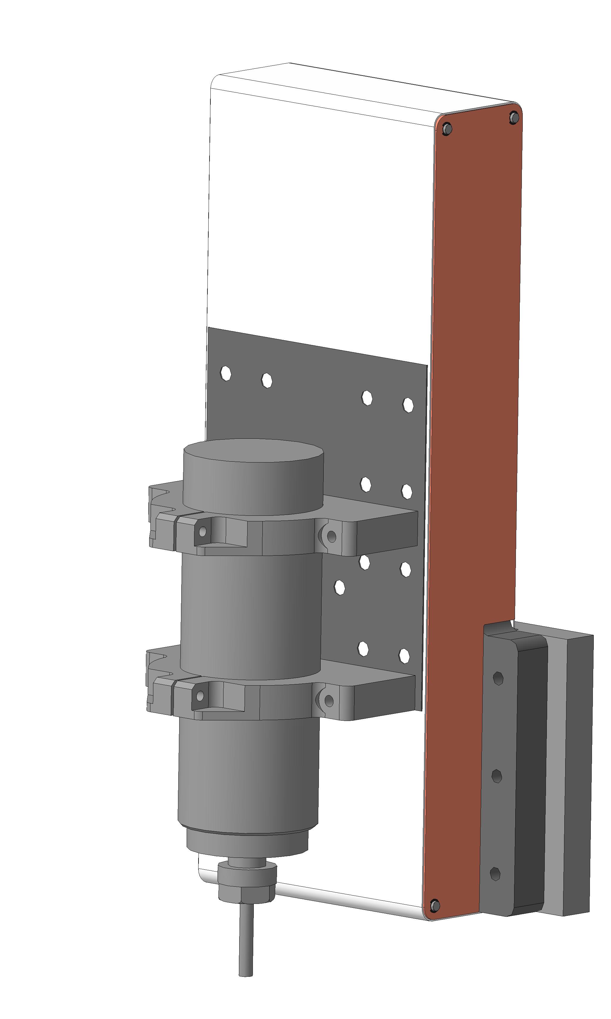 Крепеж нарисовал, правда слабо понимаю как ленту натянуть, может нижний прижим прикрутить к нижнему хомуту шпинделя снаружи и тогда он будет натягивать ленту?