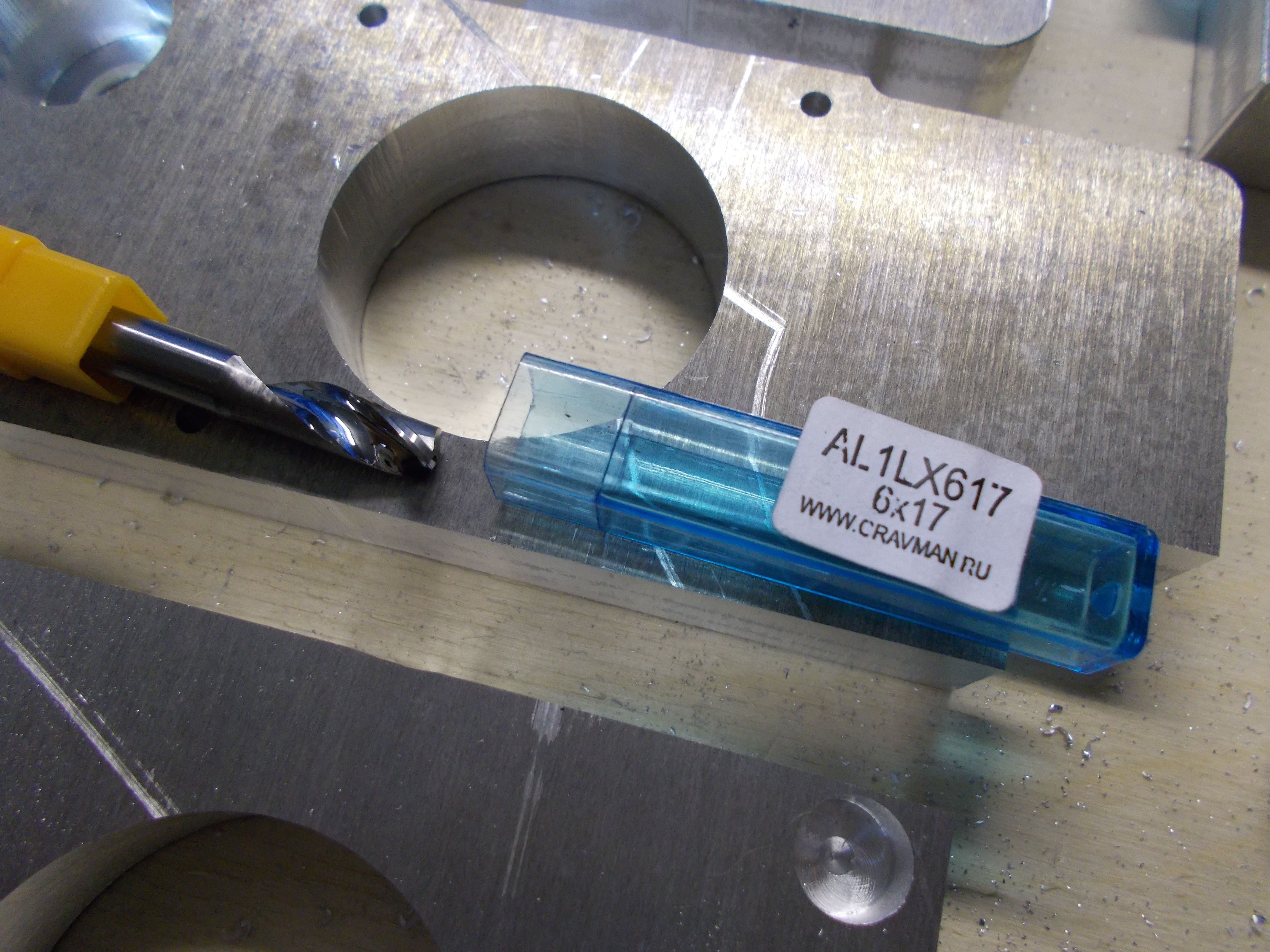Но есть одно "но". Рабочий диаметр у неё абсолютно не 6мм - он меньше. Это нужно учитывать в программе. По этому сейчас я сначала делаю все точные отверстия под подшипники - с целью вычислить её истинный рабочий диаметр - потом этот диаметр фрезы использую для расчёта всех остальных УП. Двузубые фрезы мне не подошли - постоянные налипания и качество поверхности. С однозубой лучьше, несмотря на то что она почти в 2раза дороже.