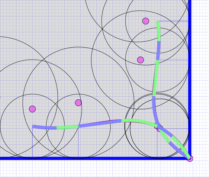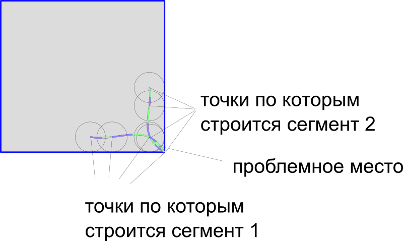 Это известная проблема, но пока не вижу ее решения. Траектория расходится, т.к. траектория это набор сегментов, построенных по четырем точкам. Если первые точки у сегментов не совпадают, то будет расхождения между сегментами и после совпадения точек...