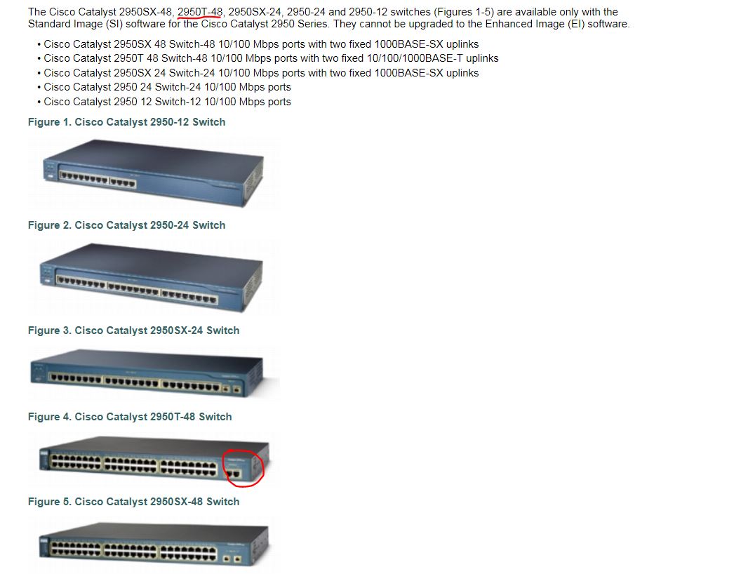 буковка G означает лишь то, что имееются 2 порта 1Gbit/s, весть остальной функционал у них одинаковый. У них даже прошивка одна и та-же.afz писал(а):буковка G дает функционал EI (крутизну повышает), а в Model number: WS-C2950-24 нету такого счастья