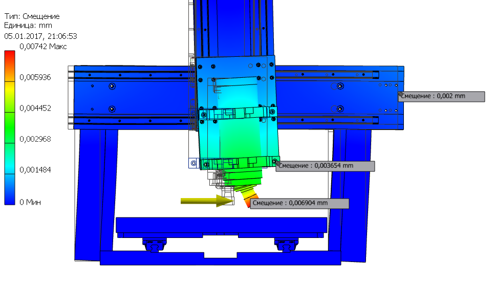 станину надо симулировать давлением на центр стола. возможны свисты при врезаниях. рабочее поле по Z для такого станка максимум 130мм разумное.