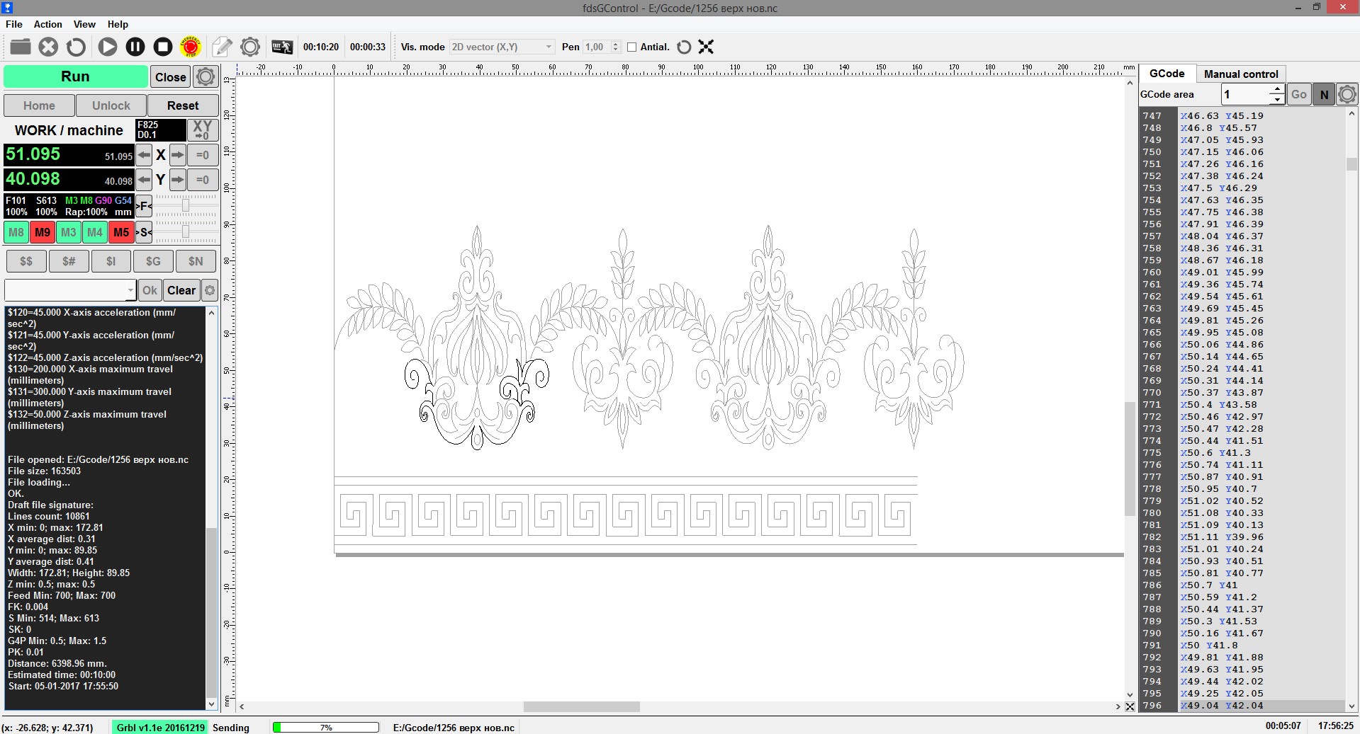 на этом вроде конфигурацию показывает по $$ но grbl controller в графическое окно их вытянуть не может, команду отсылаеш , вроде принял а цифры/ координаты на месте стоят, сброс осей в ноль команду принимает , а по факту не сбрасывает