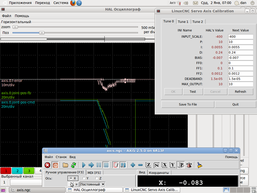 Сегодня подкорректировал PID, добился некоторого улучшения, но :wik: , при движении ось издает звук, похожий на резонанс-как будто все болты станка ослаблены, причем и при низких, и при высоких скоростях.