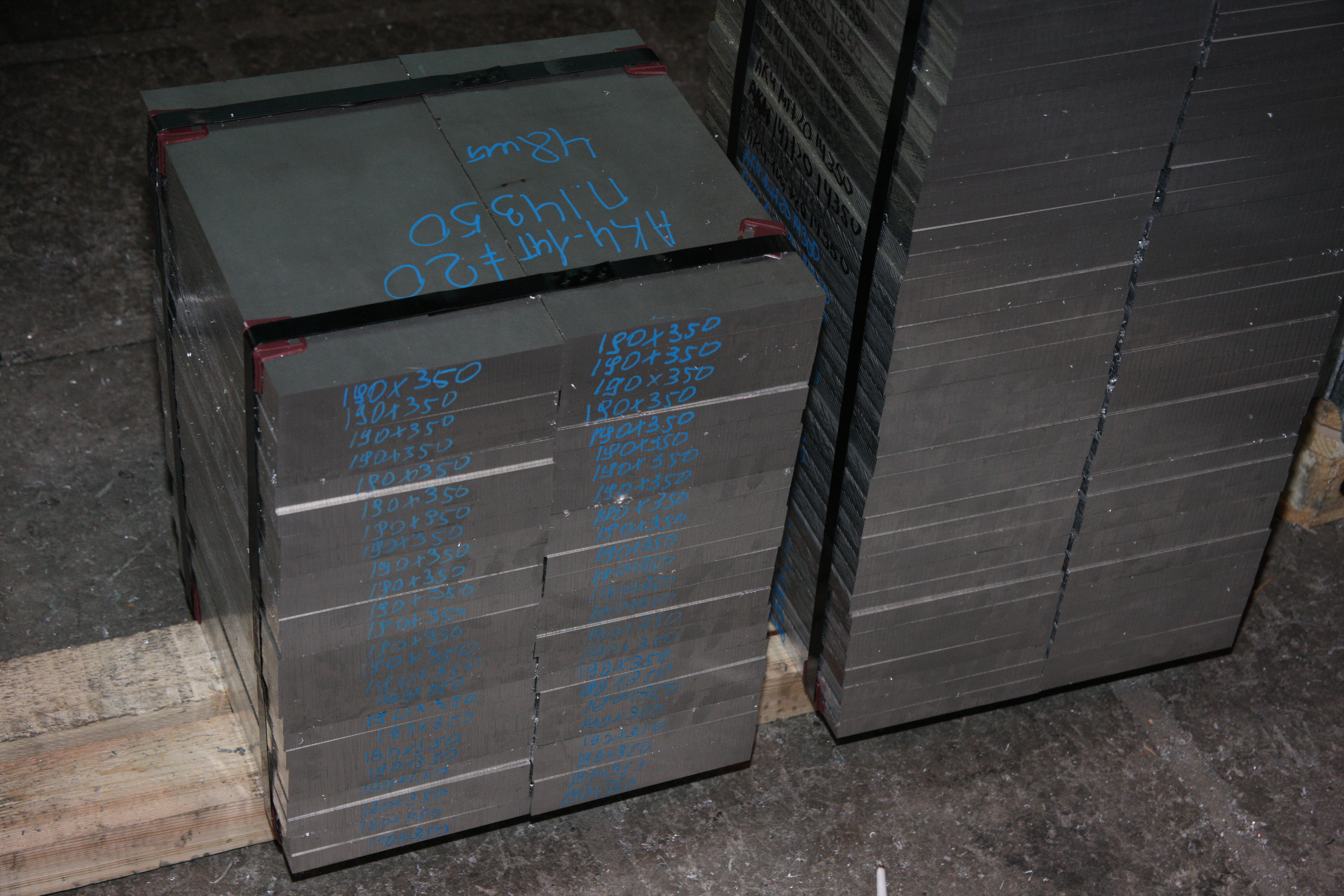 На упаковку из плит АМГ6 =140мм сверху положены обрезки. Горбушки и торцовочные кромки.