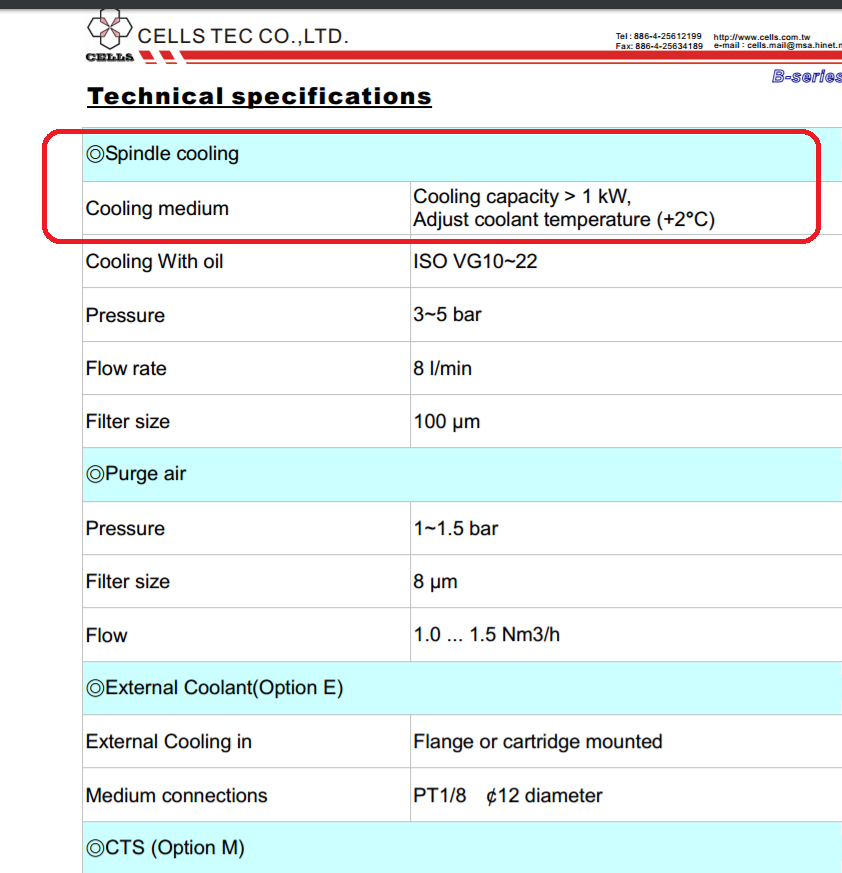 Обычно подобные шпиндели имеют характеристики типа таких:aftaev писал(а):На шпинделе есть специальная канавка в виде резьбы это для для жидкосного охлаждения шпинделя в станине станка. Но у станка вообще не было предусмотрено охлаждения и это при 8-10квт шпинделе