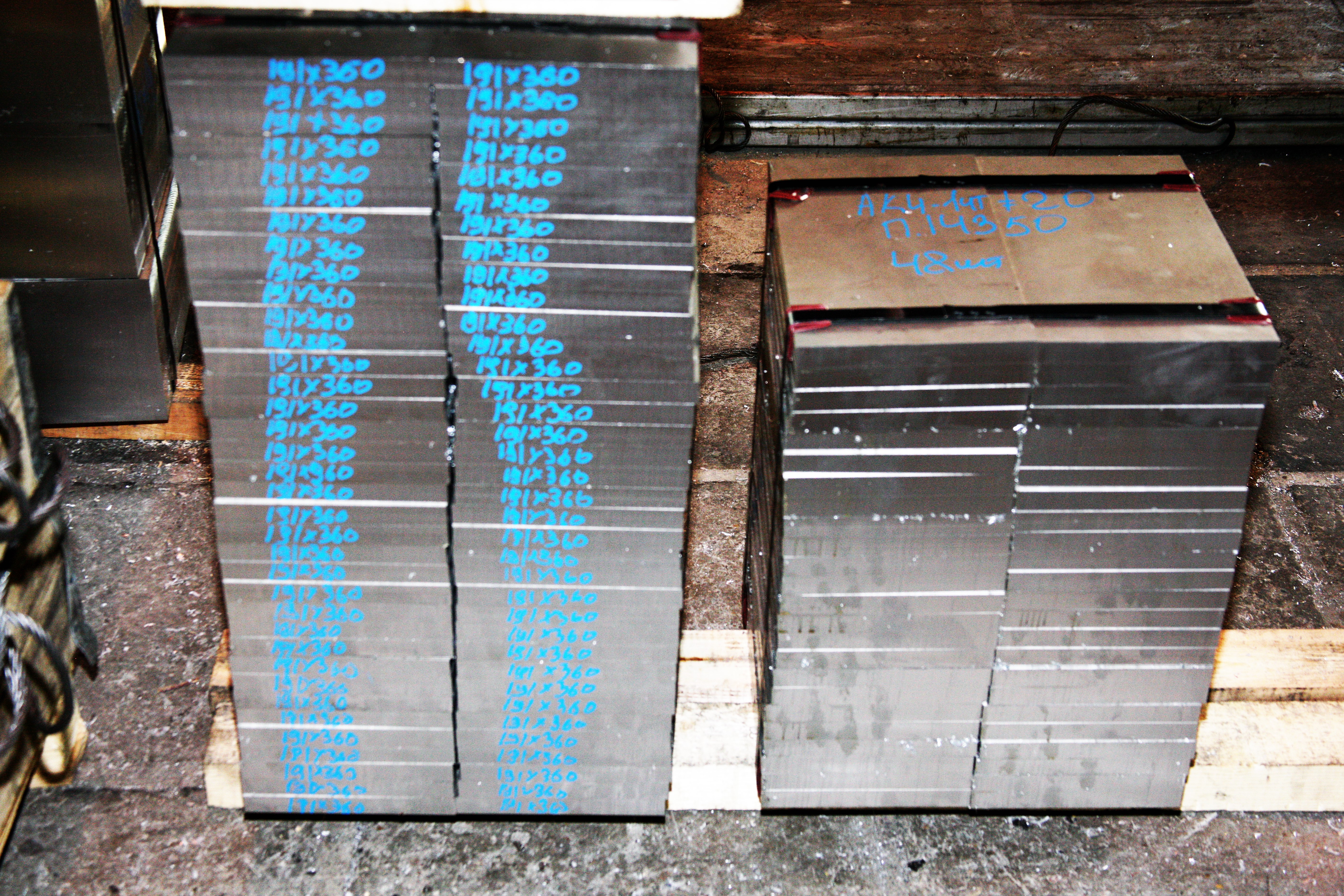 На упаковку из плит АМГ6 =140мм сверху положены обрезки. Горбушки и торцовочные кромки.