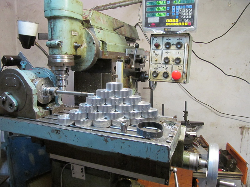 Валил однозубкой, не смотря на уверенную подачу 250мм/мин фрезеровка одной штуки занимат около 20мин. Долго, при наличии спроса на подобную продукцию (шкивы) нужно покупать червячную фрезу и валить в режиме забореза, благо оЧПУшеная УДГ позволяет это делать