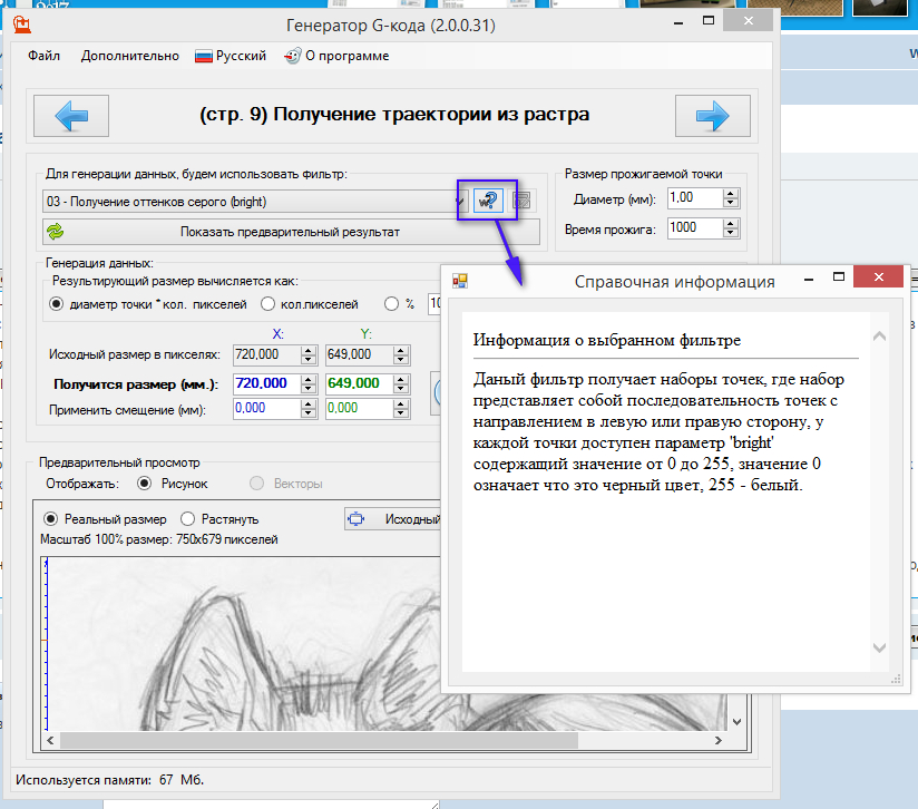 Параметр "bright" заполняется только в одном случае, когда на станице № 9, используется фильтр №3 "Получение оттенков серого", я сейчас понемногу продумываю документацию, и пока сделал так: