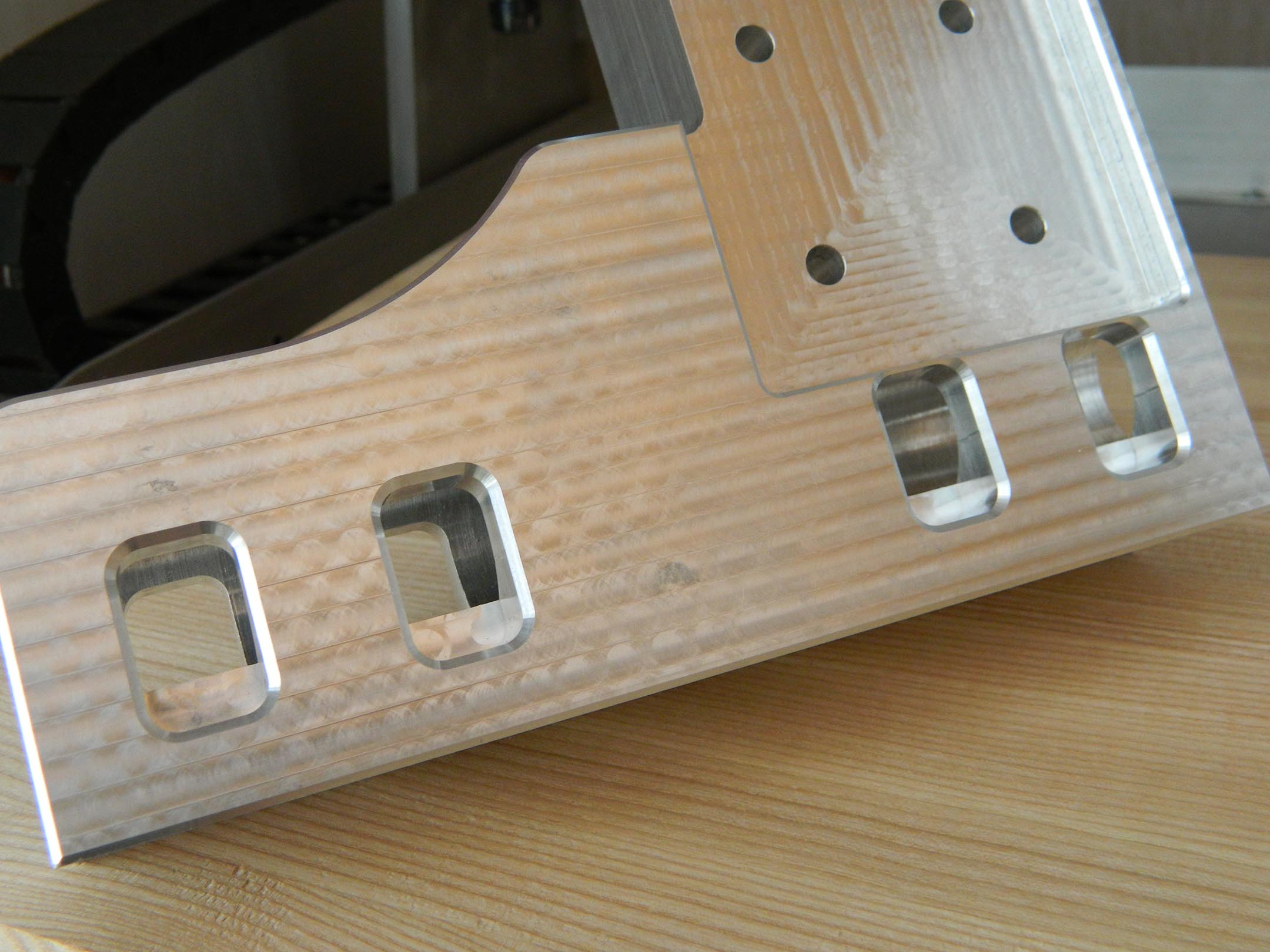 Затем фрезеровка карманов под винты крепления кареток и снятие фасок.