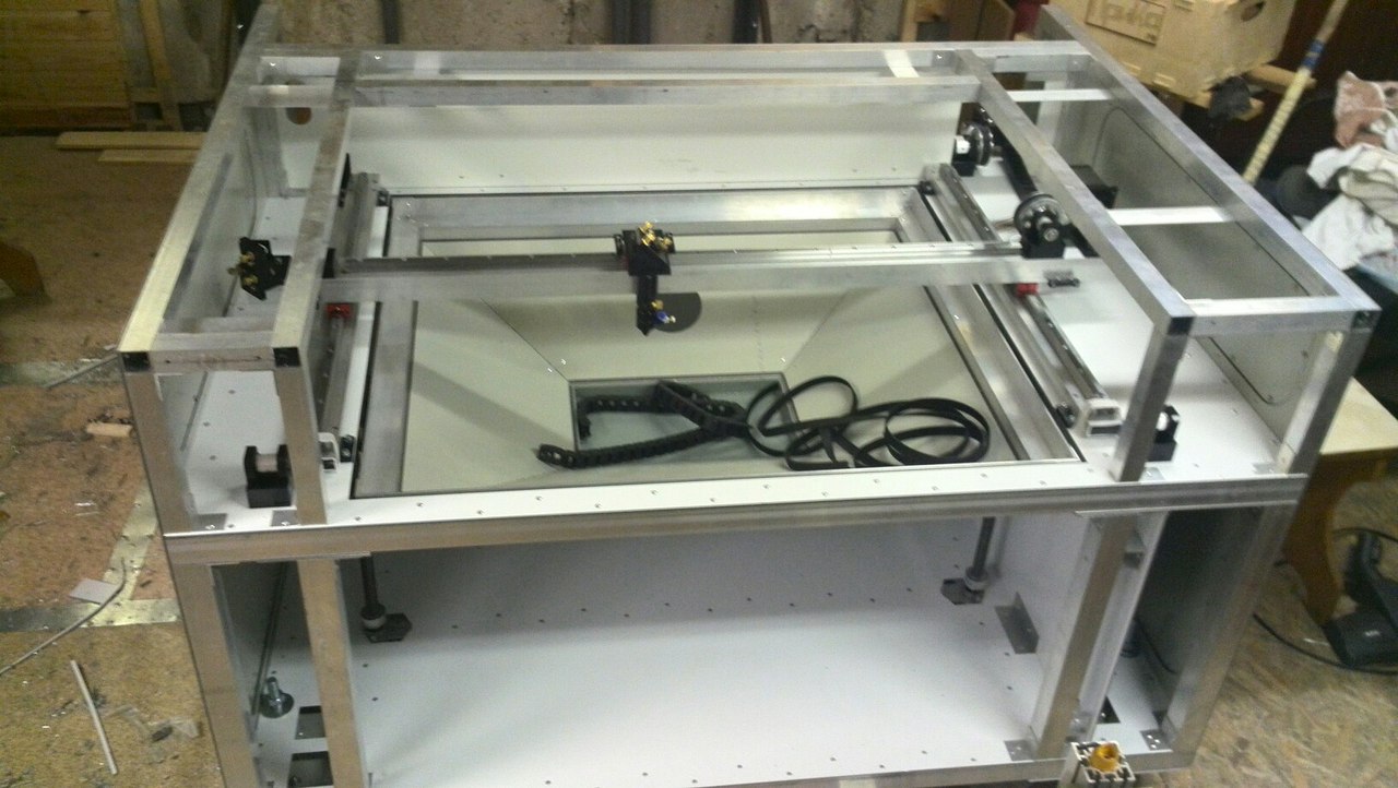 Раму делаю сборную из алюминия, (вот сейчас и делаю =)) Электроника будет в столе, вытяжка уже стоит на своем месте.