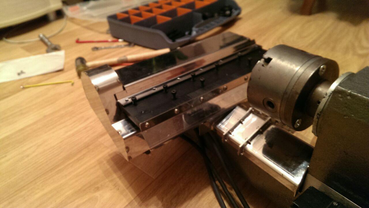 Механику закончил на 99%. Нужно теперь думать над магазинами для резцов, какие и как ставить. Паз сделал как раз для этих целей. В планах смена магазина целиком.