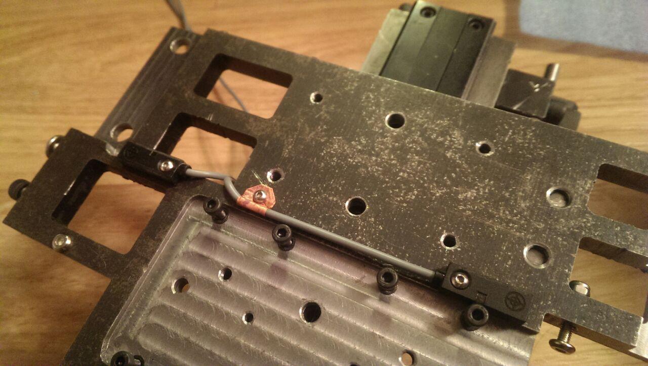 Датчики лимитов встали вот таким образом, крепление гайки ШВП поперечной является и шторкой для датчика. Коллега поделился опытом, что механика бывает проскакивает индуктивные датчик на высоких скоростях и очень не лишне бы поставить механические датчики (ток места особо нету их впихнуть...), будем надеяться что инерционность в нашем решении не велика (масса совсем не большая) и остановка будет быстрая - датчики поставлены так что дальнейший ход в сторону лимита происходит в зоне действия сенсора датчика. Датчики сведу в коробочку мелкую коммутационную и вместе с кабелями сервы уведу нормальным гибким кабелем к разъему