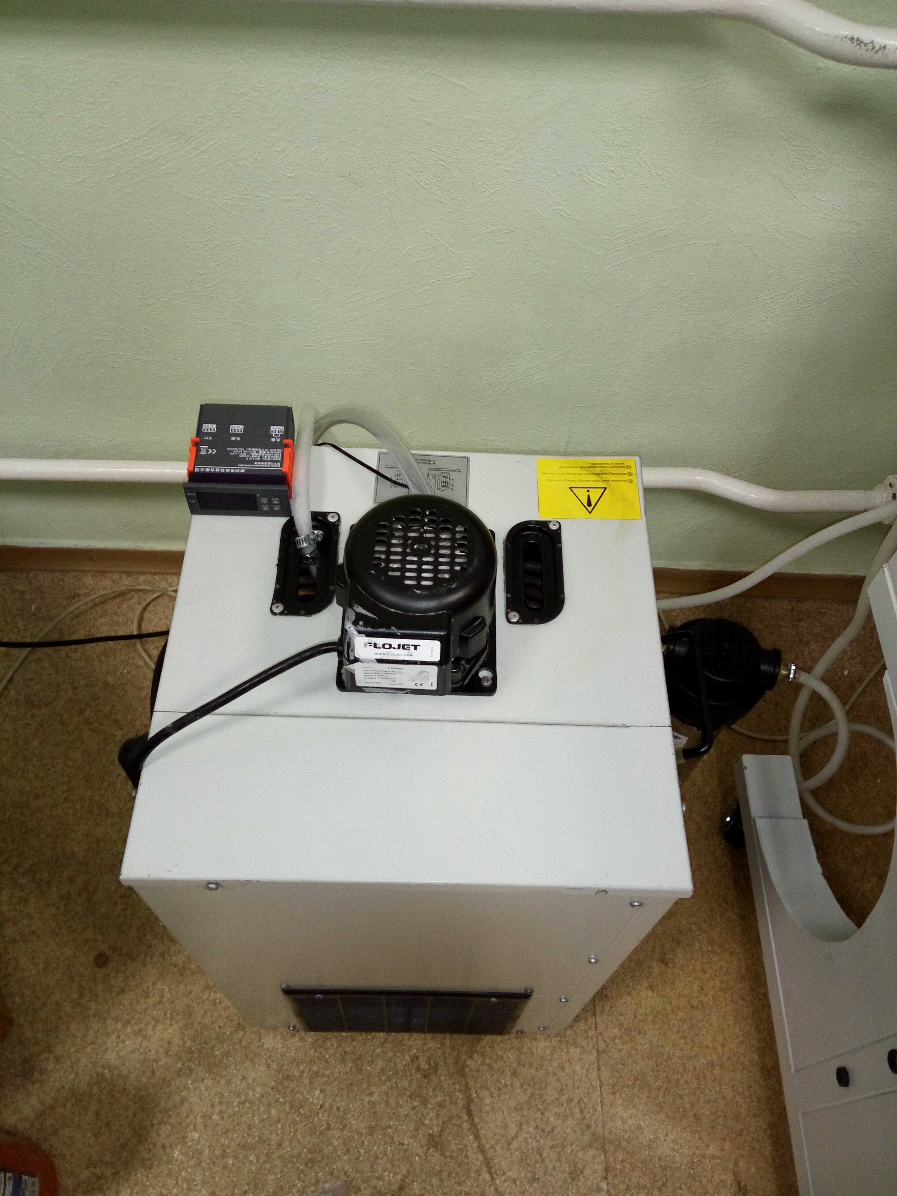 Пивной охладитель Тайфун 75 3 контурный. Куплен б\у, помыт, контура выкинуты, аналоговое термореле выкинуто, куплено на Али цифровое термореле за 10 баксов. Помпа подключена самого охладителя, гоняет воду веселее китайской. Стоит температура 14 градусов, при повышении до 15, охладитель сам включается и опускает до 14. Собственно все.