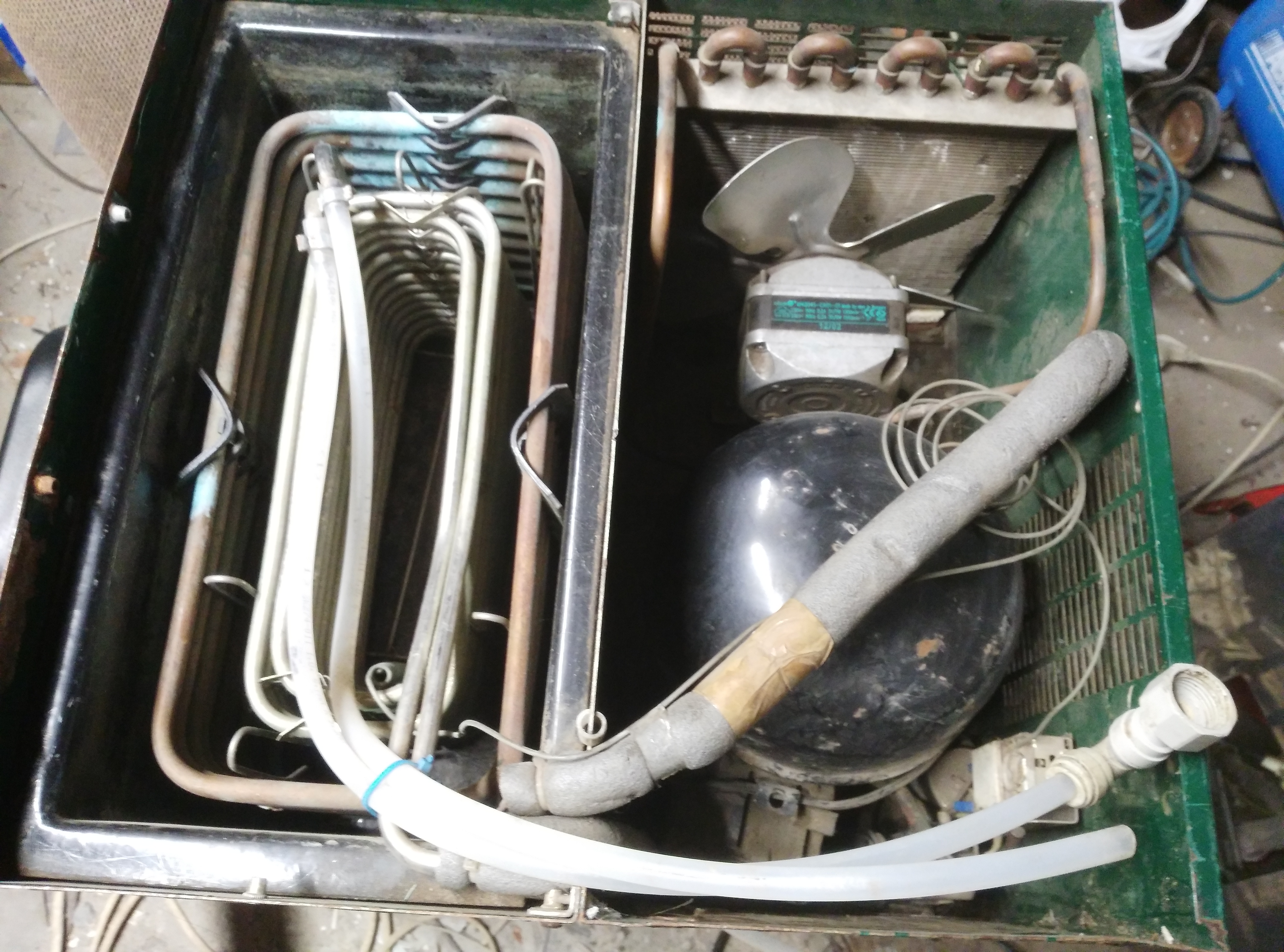 Пивной охладитель Тайфун 75 3 контурный. Куплен б\у, помыт, контура выкинуты, аналоговое термореле выкинуто, куплено на Али цифровое термореле за 10 баксов. Помпа подключена самого охладителя, гоняет воду веселее китайской. Стоит температура 14 градусов, при повышении до 15, охладитель сам включается и опускает до 14. Собственно все.