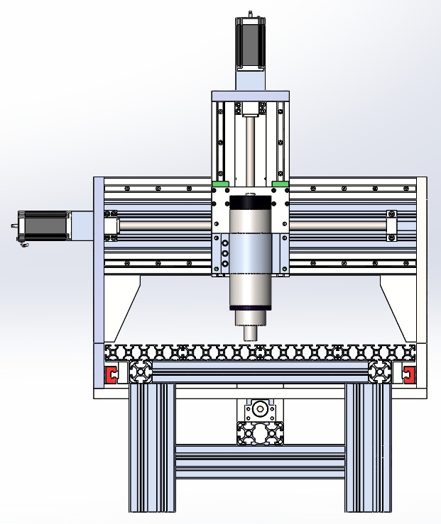 "Немного" переработал, с учётом советов. В солиде погнуть не получается весь станок, как и отдельно ось Y, поэтому опять не знаю на сколько стало жёстче. Так же не могу определиться, надо ли добавить на плиты портала, что-то типа полосок, чтобы получались рёбра жёсткости. Очень хочу обойтись без сварки. Сейчас выглядит вот так :