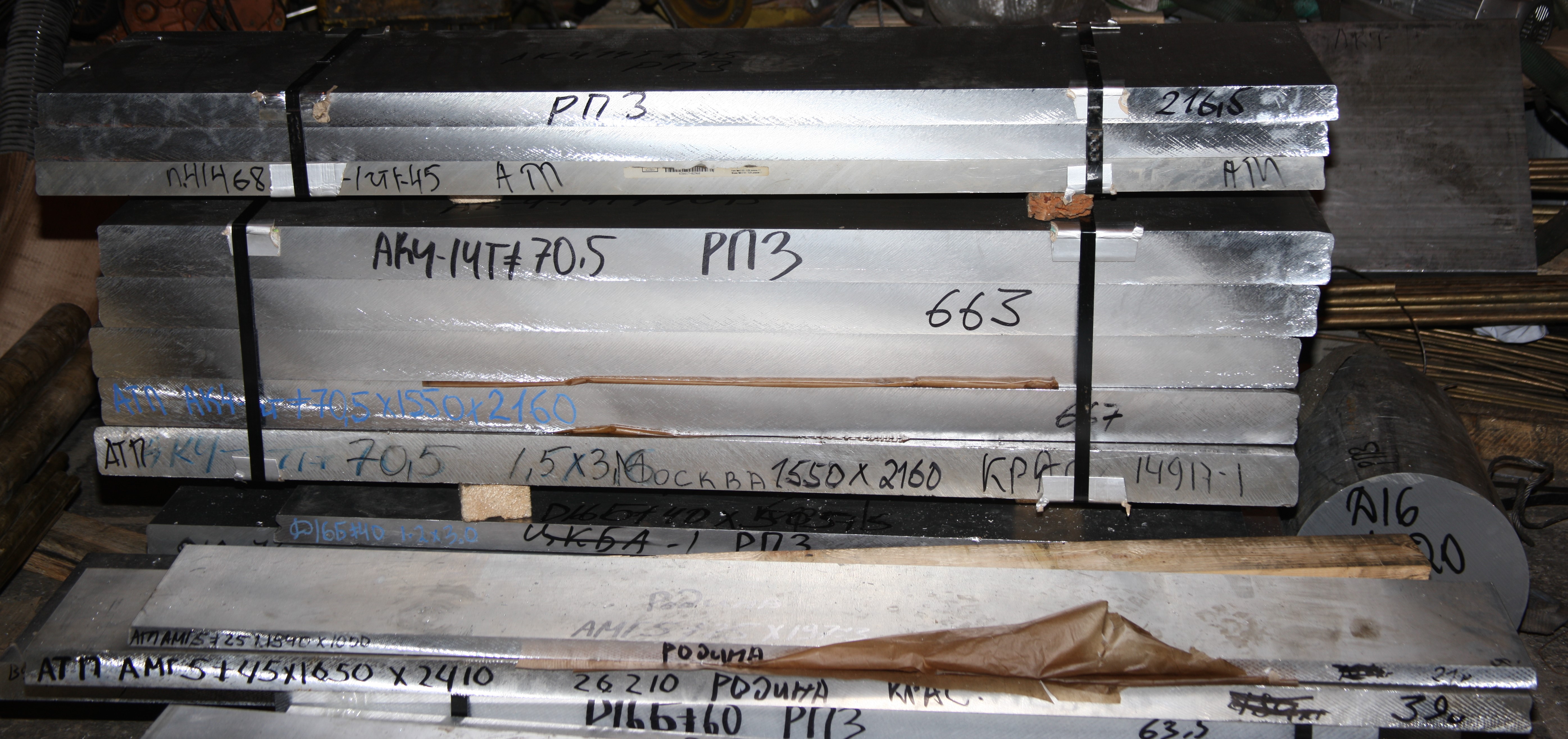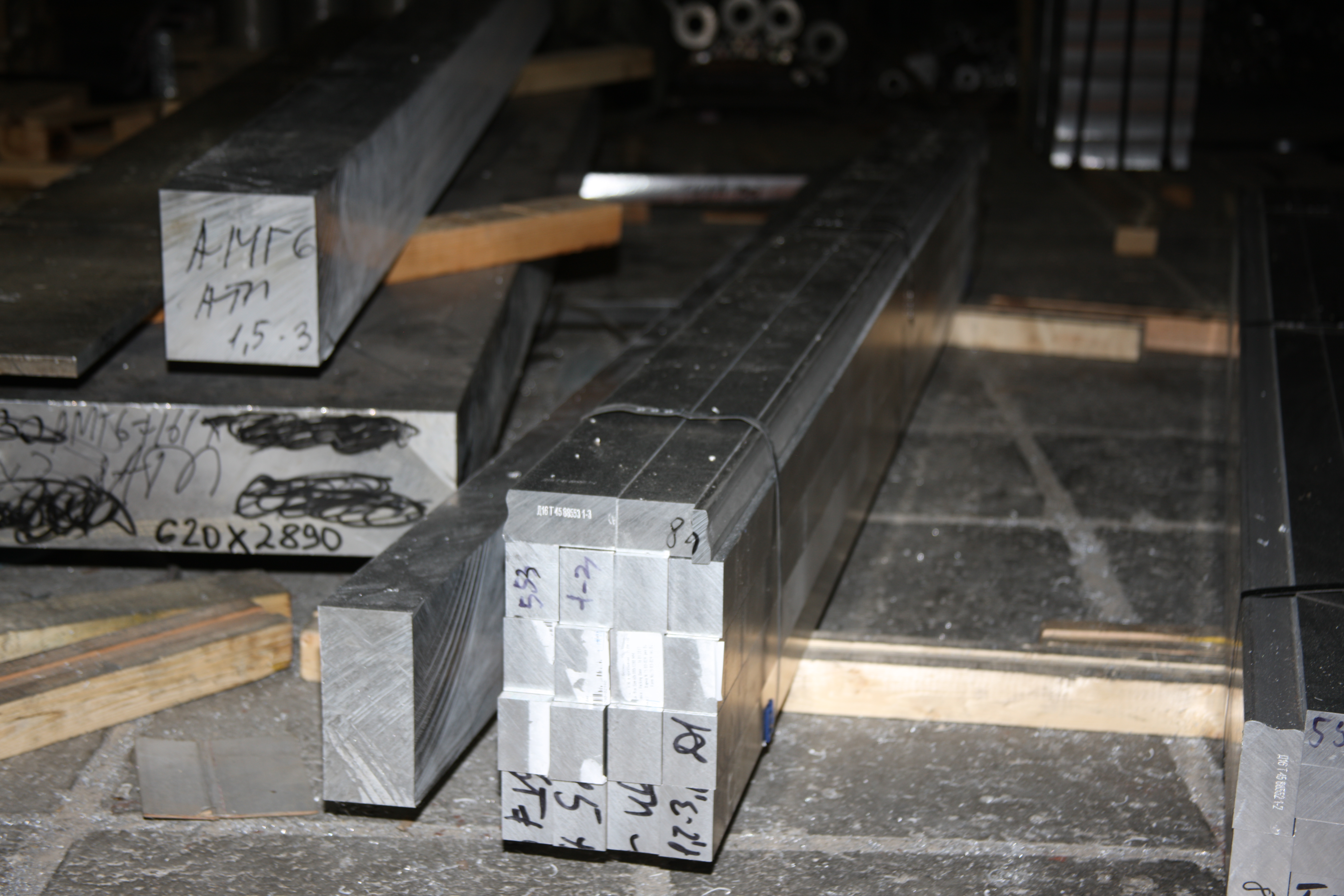 Заготовки из плиты Д16 =80мм с АТП. Сверху обрезки-горбушки.