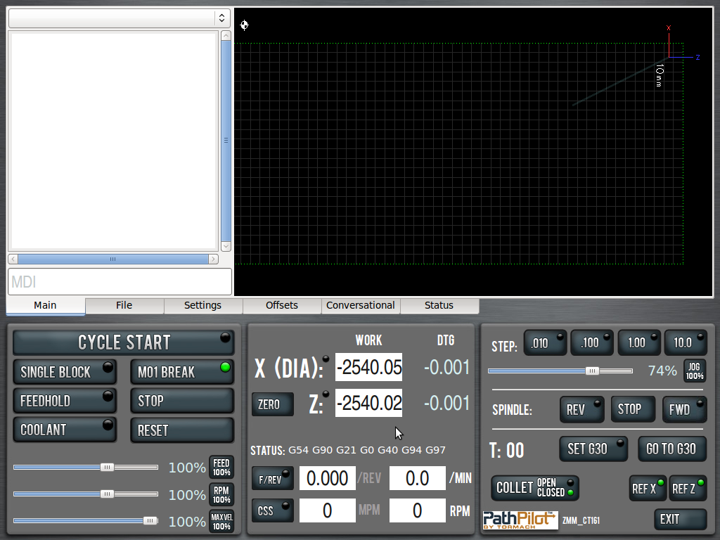 Настройки оси в мм .PathPilot стартирует с маленкий дисплей рабочее поле .
