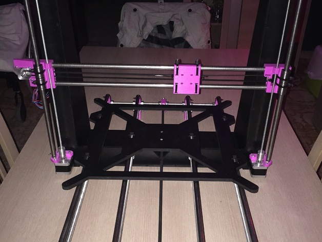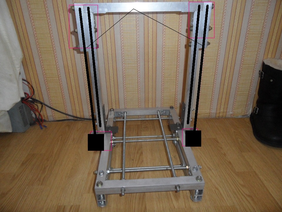 Зачем это - погуглите "Z wobbling" и как с этим героически борются разными скользящими креплениями Z гаек к каретке на готовых прюшах. Двигатели сверху позволяют воткнуть туда тонкие шпильки, типа M3 - поскольку так они будут работать на растяжение, а не сжатие, то и таких вполне достаточно - каковые не смогут сколь-нибудь повлиять на изгиб направляющих, в отличие от дефолтных M8 или трапеций.