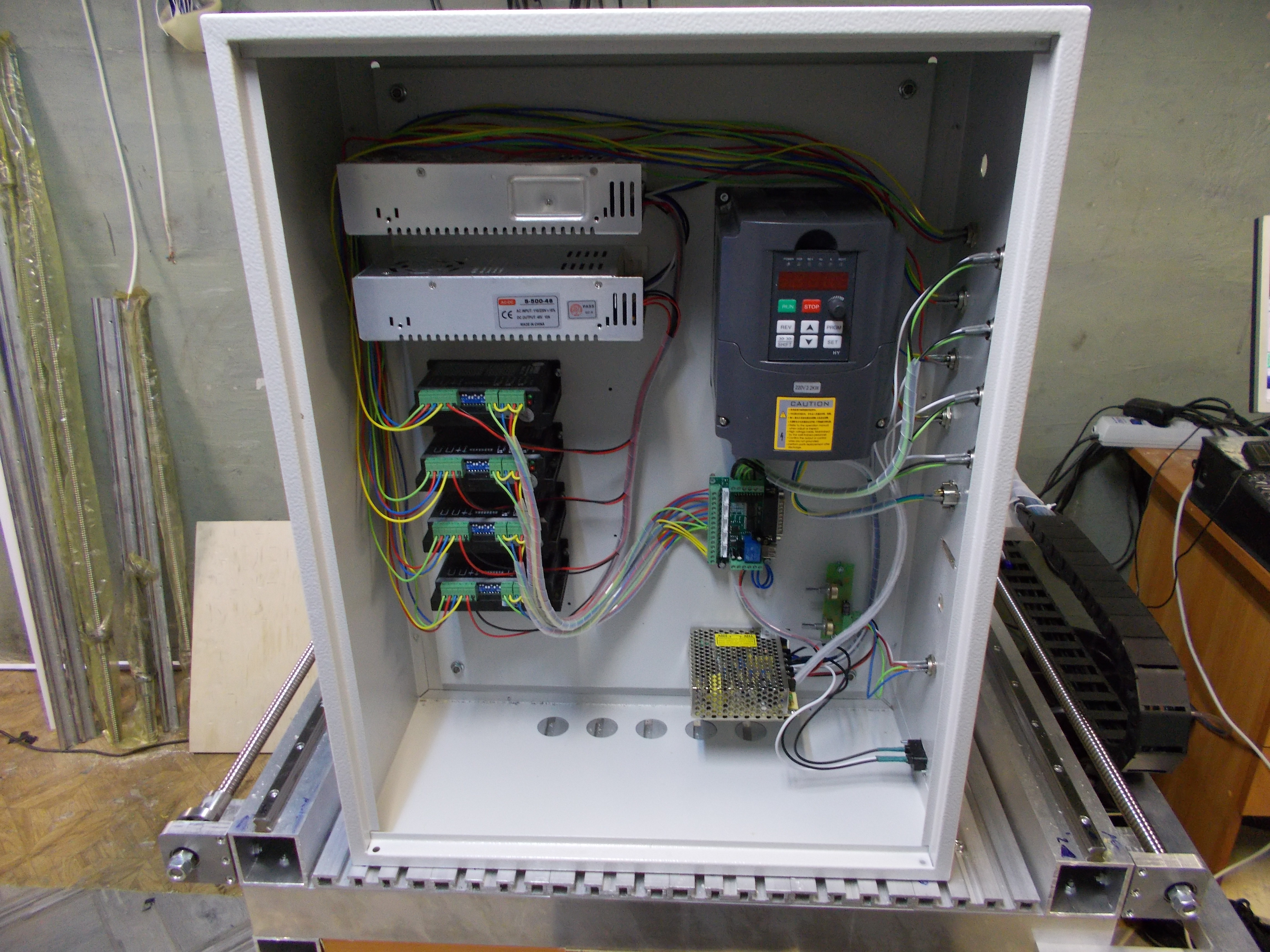 Не увидел проводов заземления блоков питания, частотника, двери шкафа, автоматов защиты.