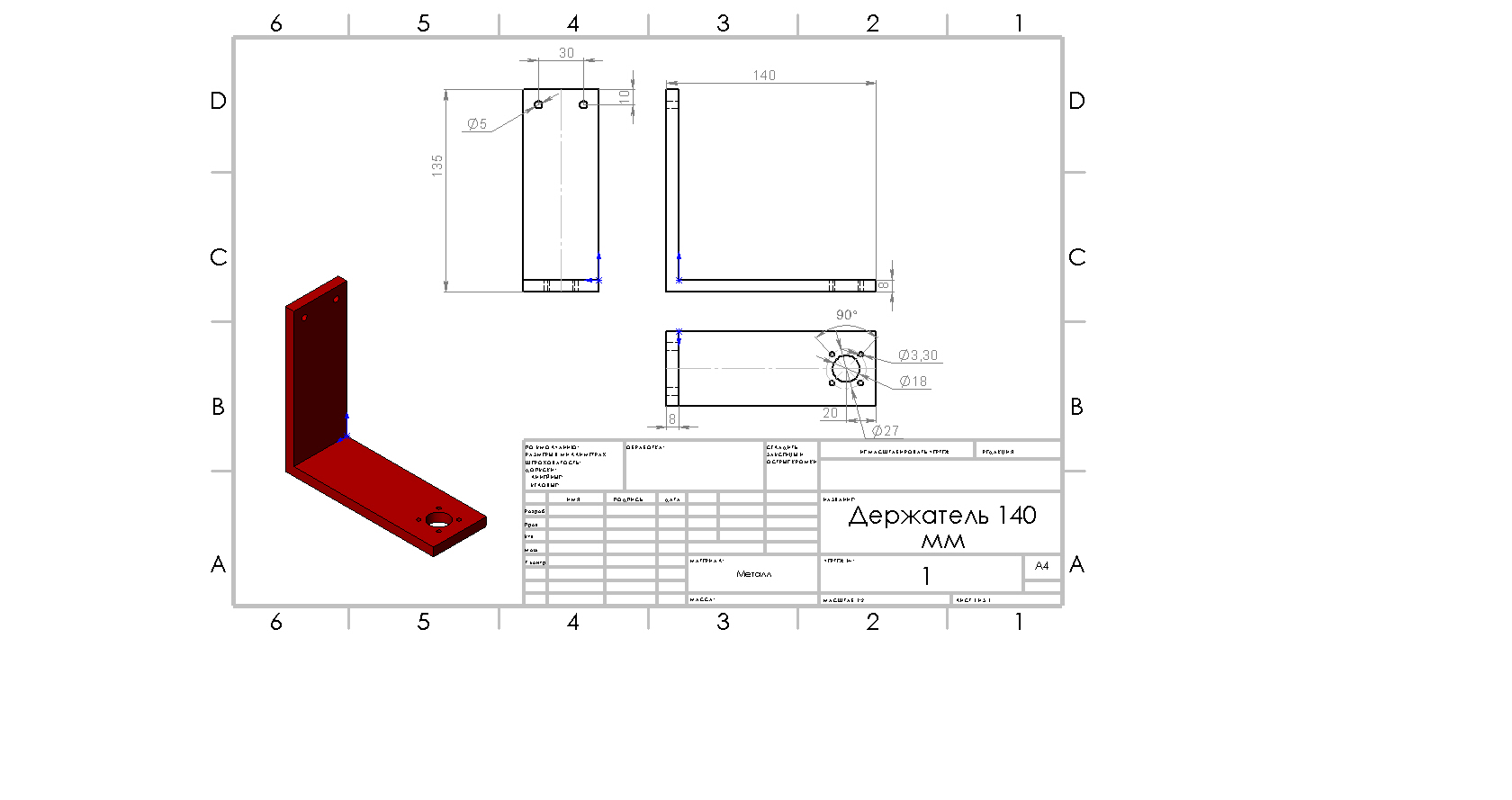 3. Держатель подъёмного столика 135х140 мм. В начале планировалось из алюминия, но вполне пойдёт из хорошего железа (сталь там не к чему), толщины хватит и 3 мм (на чертеже заложено 8 мм), главное что бы внешние размеры остались верными. Нужно соблюсти угол 90 градусов, количество 2 штуки: