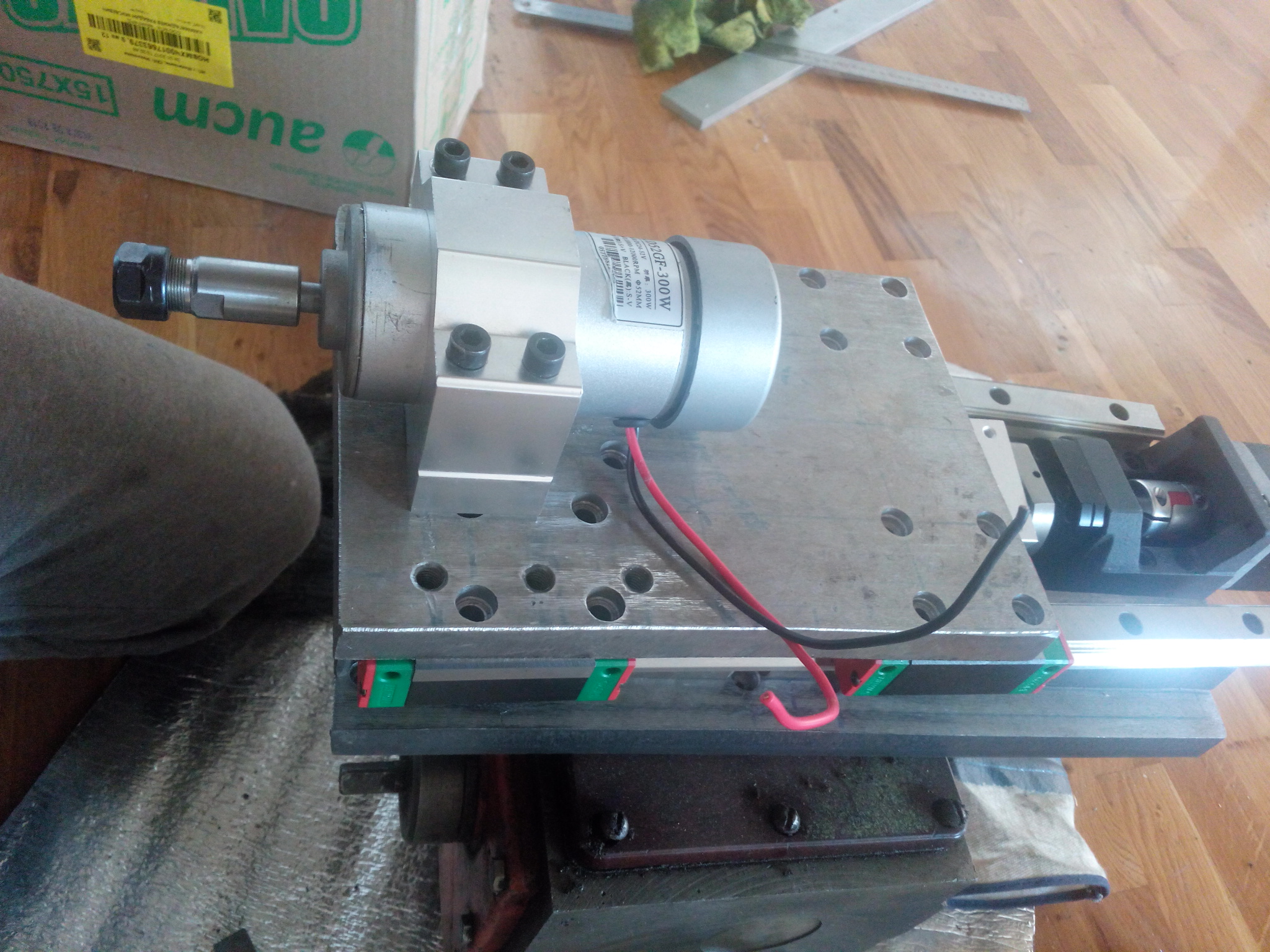 Юстировка усложняется из за шпинделя. Шпиндель нужно крепить сперва к плите, потом плиту одевать на кареты.