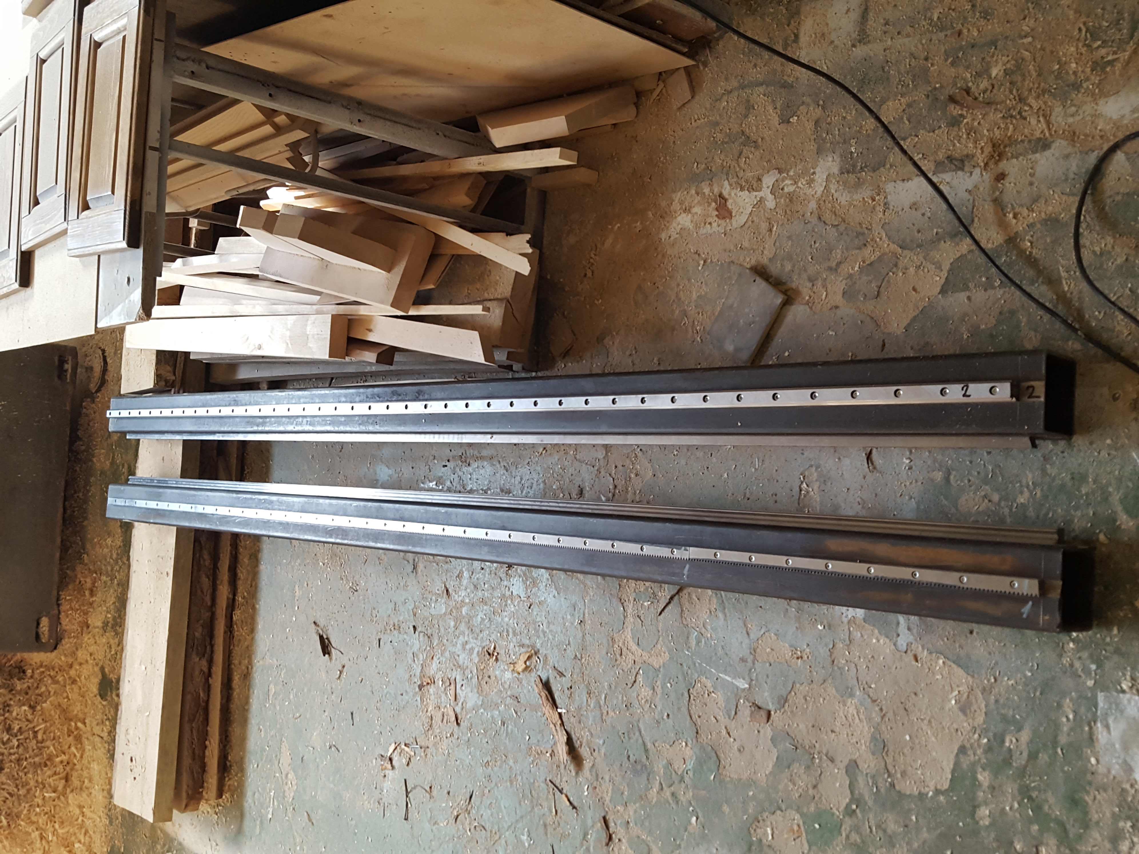 Изготовил детали портала и установил рельсовые направляющие с зубчатой рейкой на ось Х. Осталось сварить раму, и начать сборку.