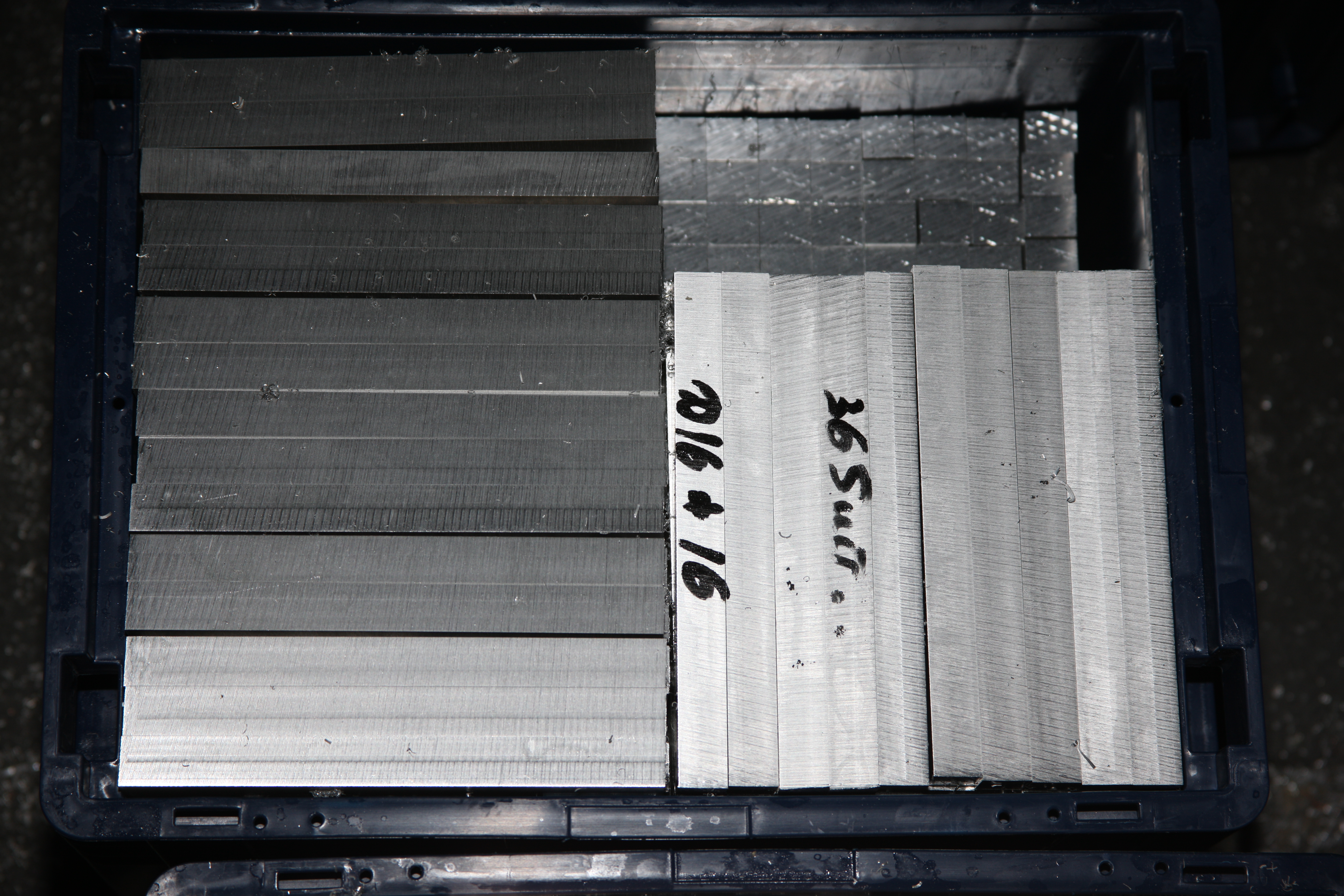 Нарезанные дюралюминиевые полосы (Плита Д16, =16мм) &quot;пакетом&quot; отрезаются в cnc-лентопиле. (5076 просмотров) <a class='original' href='./download/file.php?id=104192&mode=view' target=_blank>Загрузить оригинал (10.41 МБ)</a>