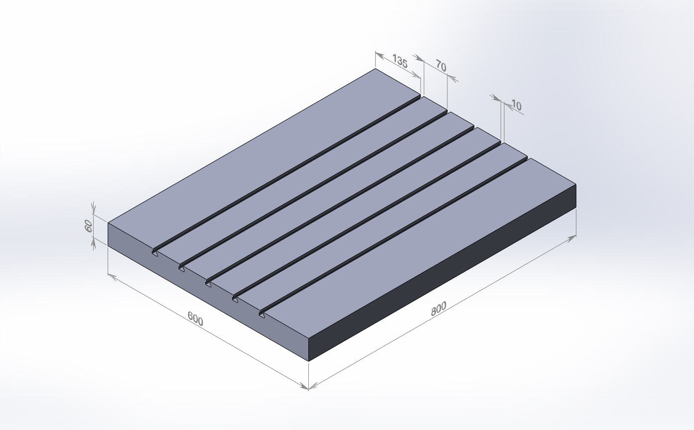 Серый чугун с термообработкой, фрезеровкой и шлифовкой. Обещают допуск по плоскостности на 800 мм - 32 мкм. Вес около 100 кг.