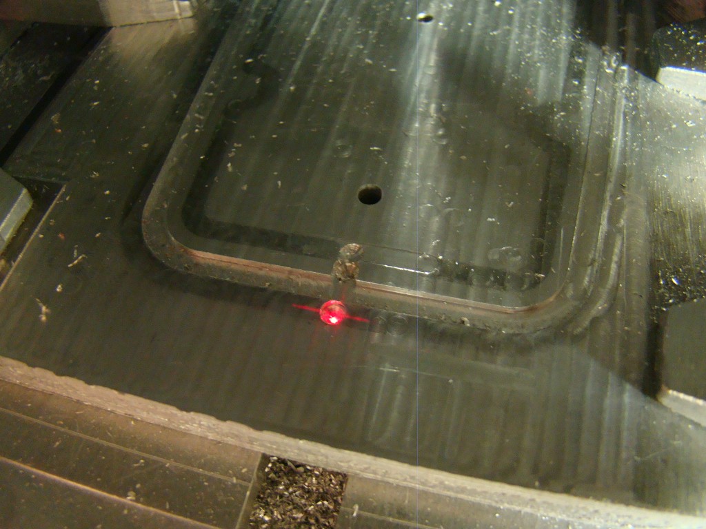 Но есть и фича - на выходе, кроме яркой точки диаметром примерно 0,3мм, есть и более тонкая горизонтальная линия, которая дополнительно облегчает "наводку". Скрипт для управления "переместить шпиндель в позицию лазера" я прописал в русскоязычный скринсет для Mach3, там для этого есть специальная кнопка.