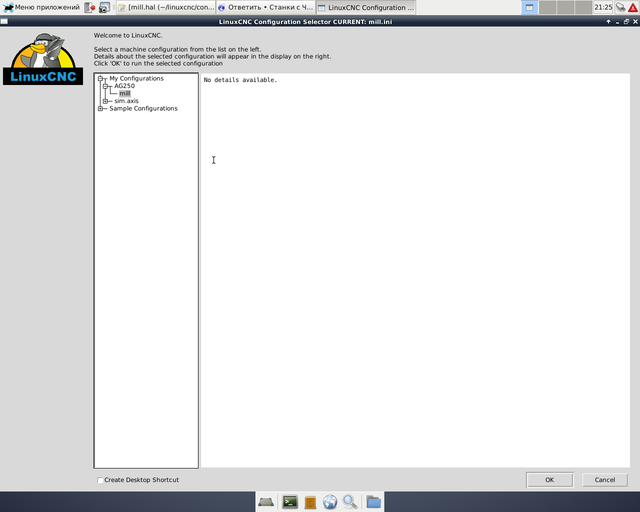 Теперь запускаете программу через которую вы запускали первую конфигурацию, но теперь в верхнем меню будет конфигурация stanok.