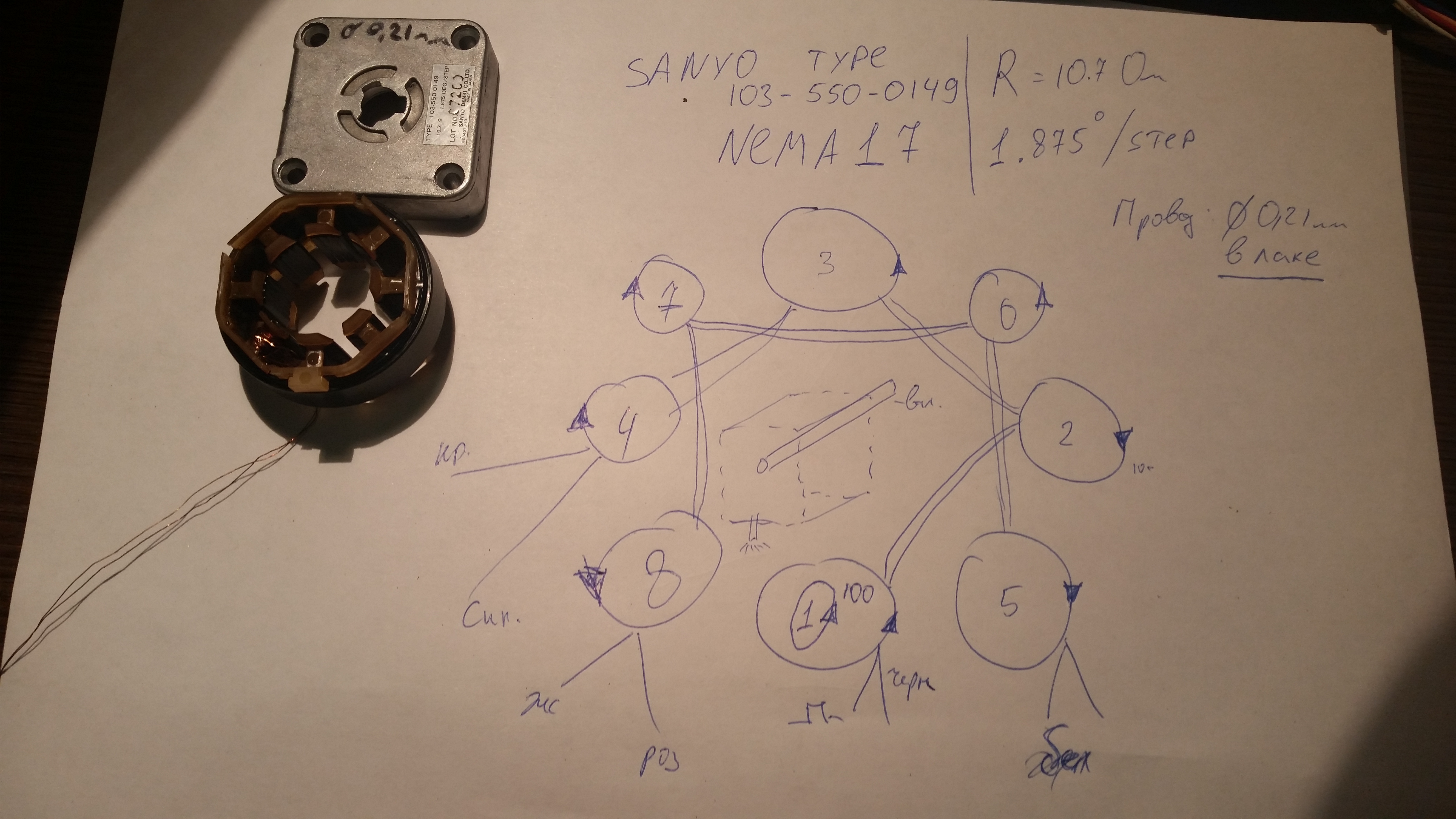 От нечего делать разобрал погорельца Nema17 6-ти выводной.