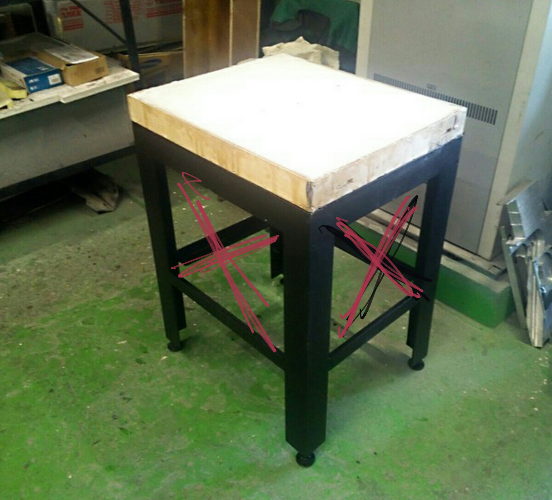 еще рекомендации. можно наварить диагонали снизу на всех 4х сторонах (на пол то точно ничего ложить под станком не будешь), а между полкой и основанием станка закрыть 3 стороны. большого сечение там не надо - самая мелкая профтруба или арматурина