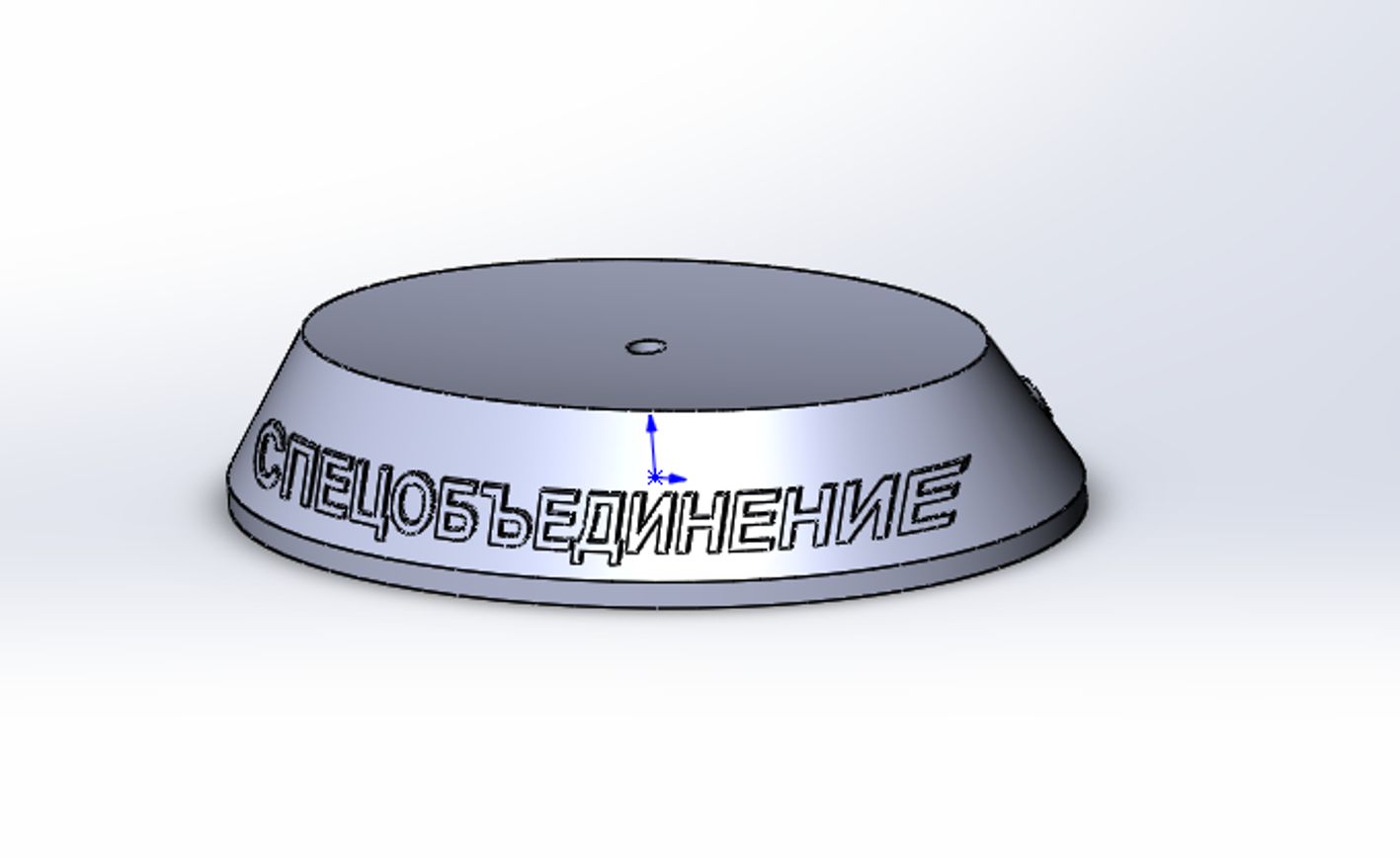 Помогите сделать надпись по кругу наклонной, овальной грани. Деталь прикрепил, никак не могу нормально ее сделать. Или для каждой буквы надо делать отдельно плоскость и вытягивать ее? Перенос почемуто не работает с такой поверхностью.