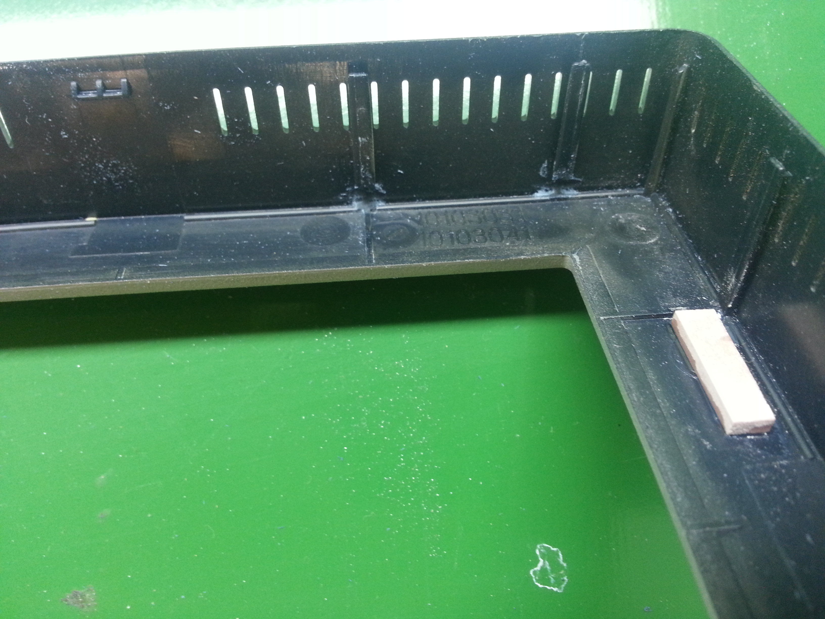 чтобы влезло стекло сдвинул матрицу глубже путем распиливания отверстий надфилем на 2мм место за матрицей это позволяет.
