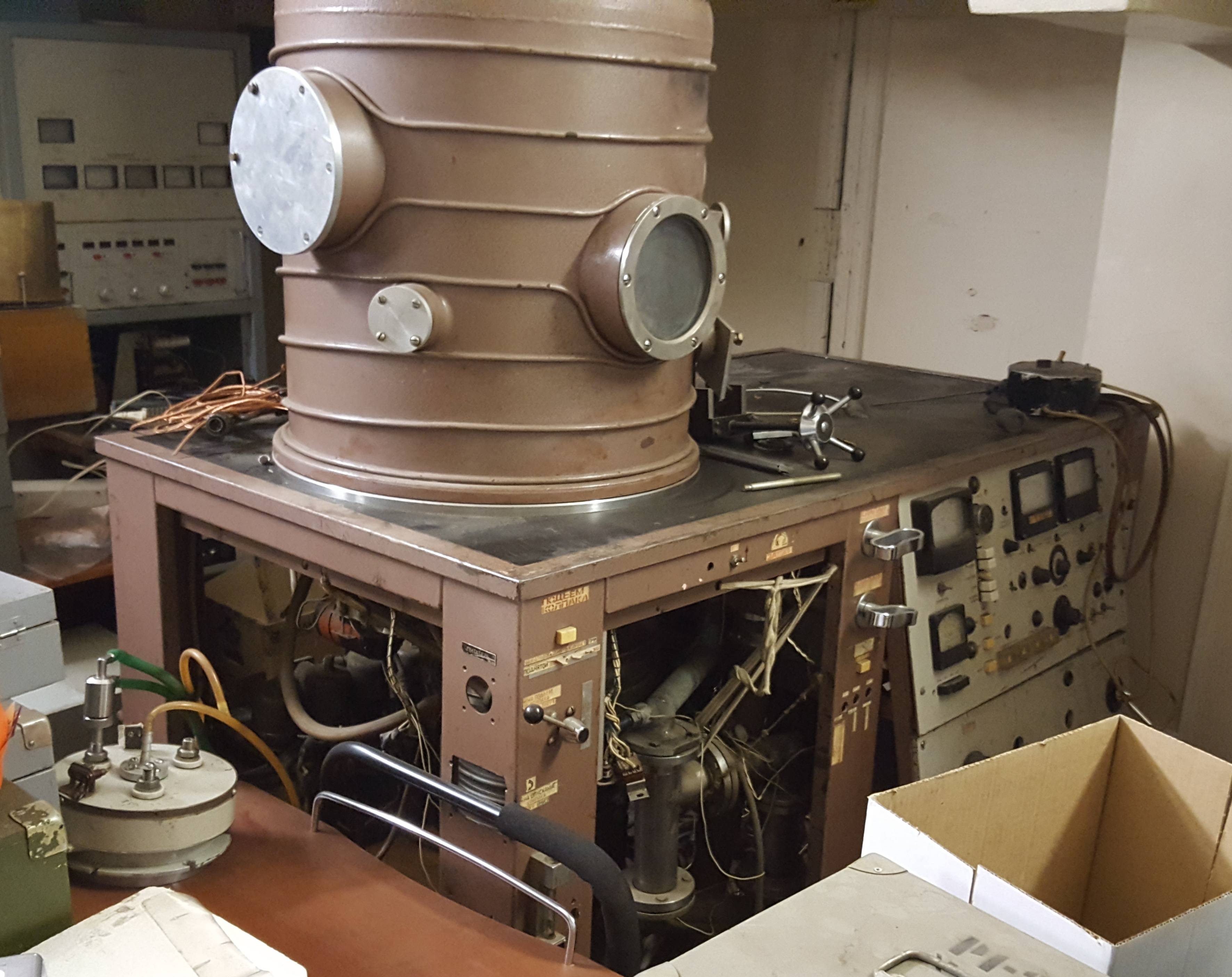 мне когда зеркала дихроидные напыляли, то установка была больше похожа на танк, цилиндр из нержи в 20мм толщиной, диаметром в пол метра. и крошечное окошко, через которое видно только саму дугу. ну и куча ящиков с электрикой-насосами и ещё хз пойми чем.