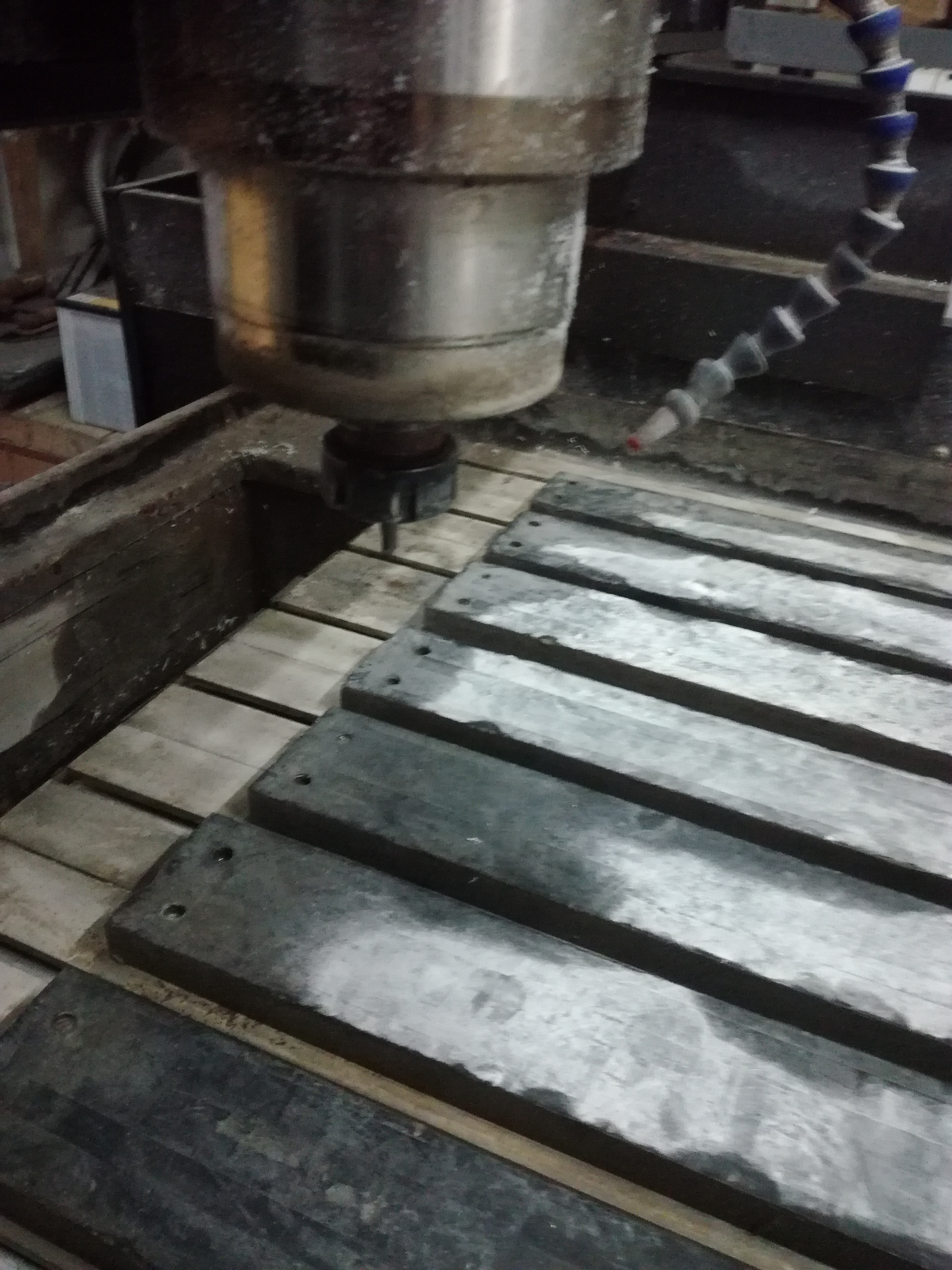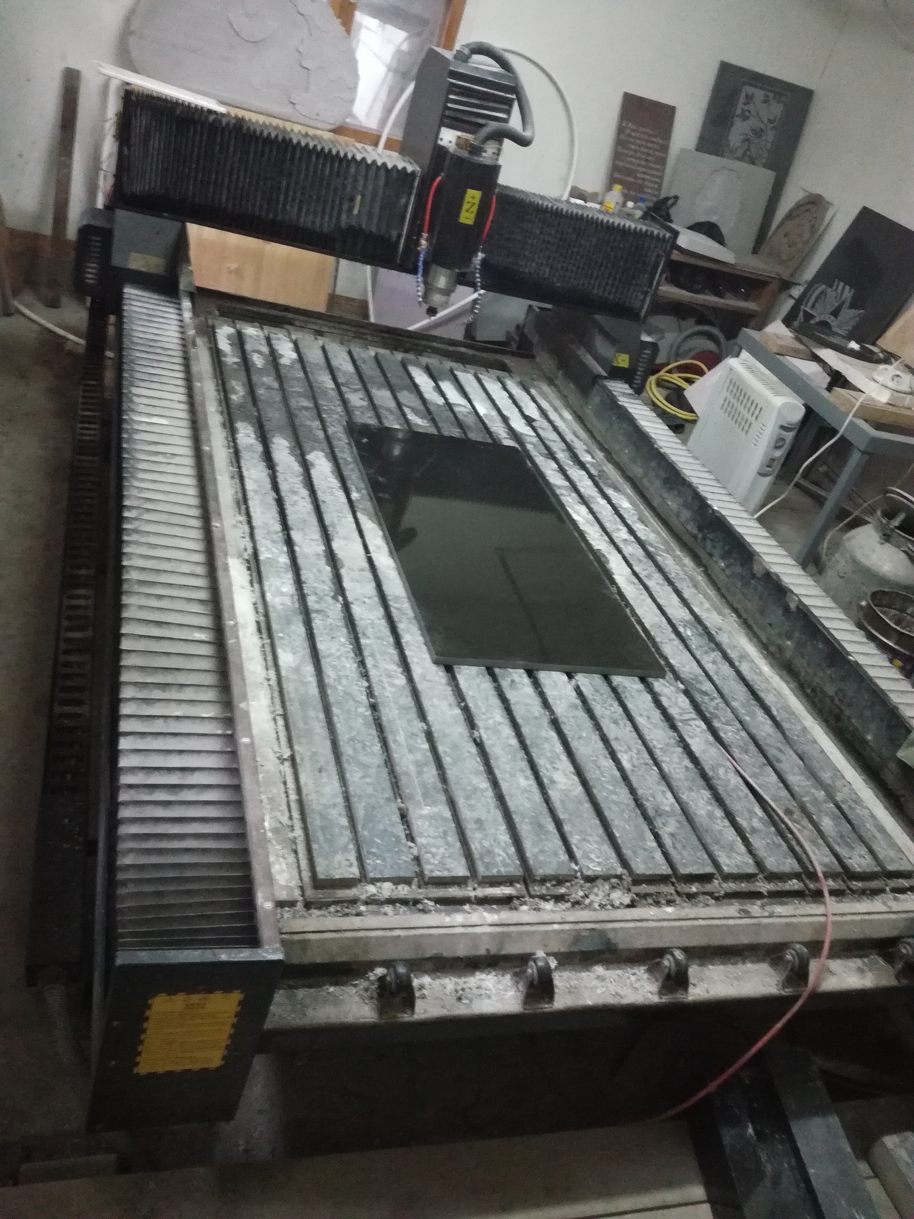 Доброго времени суток, работаю на камнерезном предприятии где вырезаю на граните буквы на чпу станке, буквы в 2d тоесть не рельеф, просто надписи и рисунки, короче станок идет не по назначению почти, но тут понадобилось сделать рельефного ангела, была сделала модель в арткам и через ns studio пытаюсь ввести в работу ,проблема в том что по оси Z станок уходит вниз раза 3 за всю работу где-то на 2 мм в итоге имеются перепады на камне и общая модель опускается на 6-7мм что само собой неприемлимо. При симуляции все показывает ровно, без перепадов, но на деле они есть, тоесть могу предположить проблема в механике самого станка, он китайский никаких инструкций нет, да и сам я не спец. Буду рад любым мнениям и советам по данной ситуации, охота разобраться, до этого на этом станке уже делались рельефы и на дереве и на паралоне и на камне, а вот сейчас проблемка, с другими моделями тоже самое, прилагаю фото станка и перепадов на паралоне