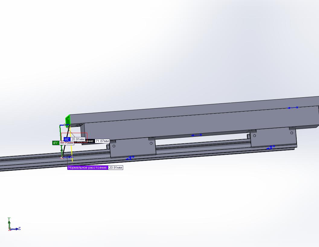 запас хода стола по оси 20мм, рельсы 1000мм.