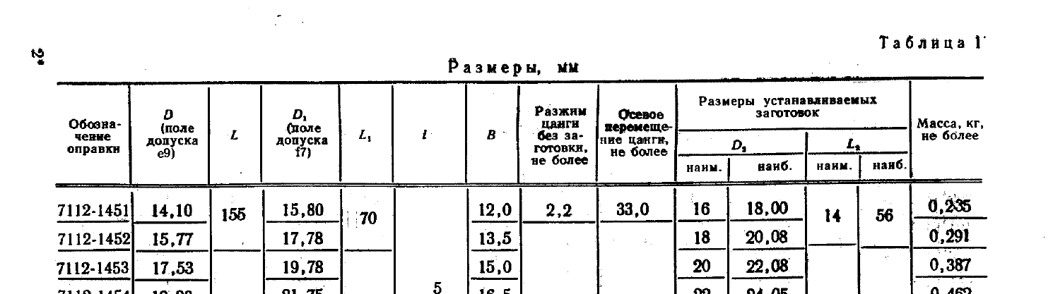 Для выполнения операции наружной круглой шлифовки сборочной единицы в процессе изготовления изделия мне нужна цанговая оправка. Именно цанговая, так как допуск радиального биения шлифуемой поверхности составляет 0.05 мм. Подходящая мне оправка описана в ГОСТ 31.1066.02-85 и имеет в нём обозначение 7112-1453-I.